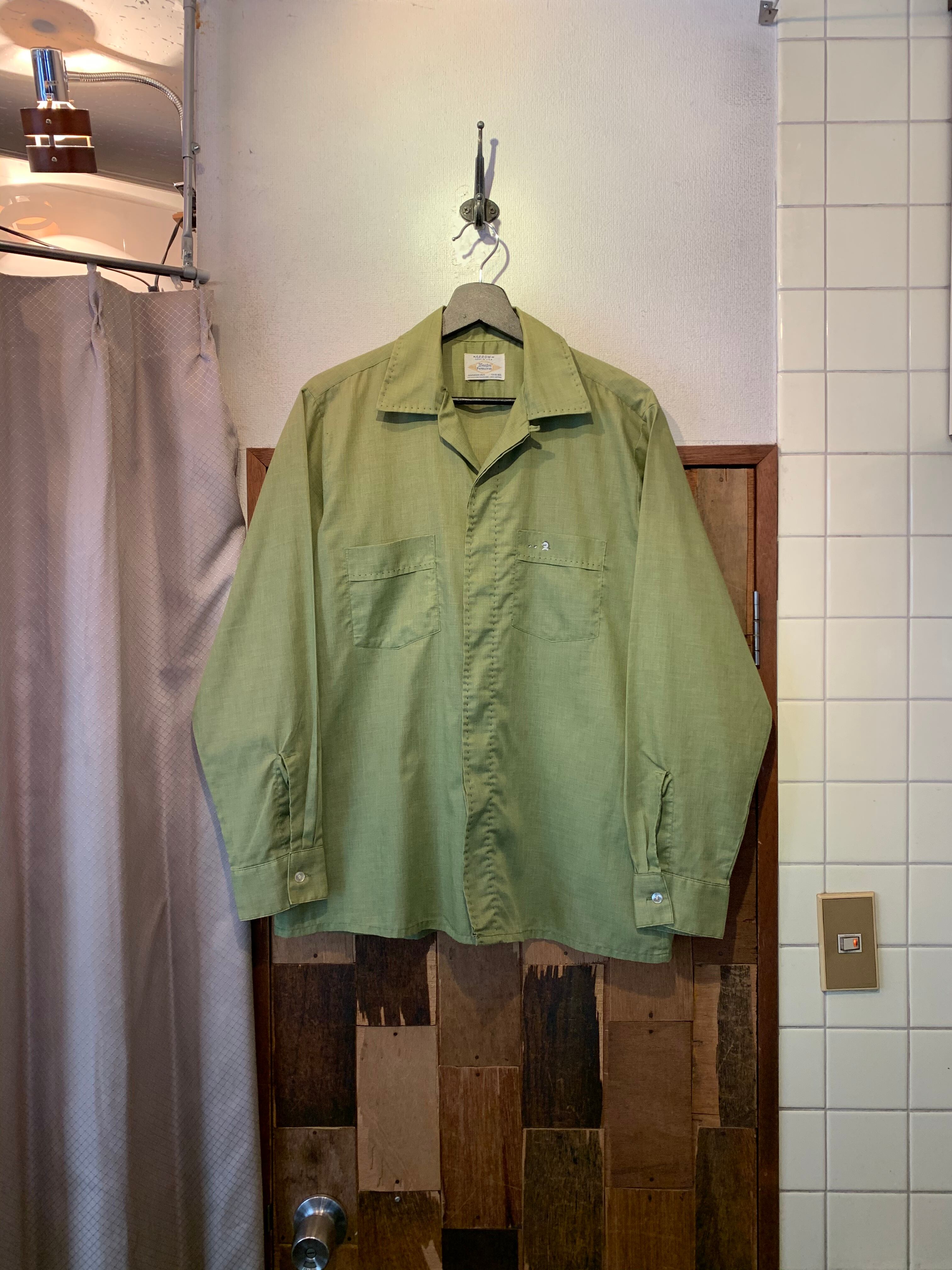 “ARROW” 60’s~70’s vintage light green base point embroidery design L/S open-collar shirt