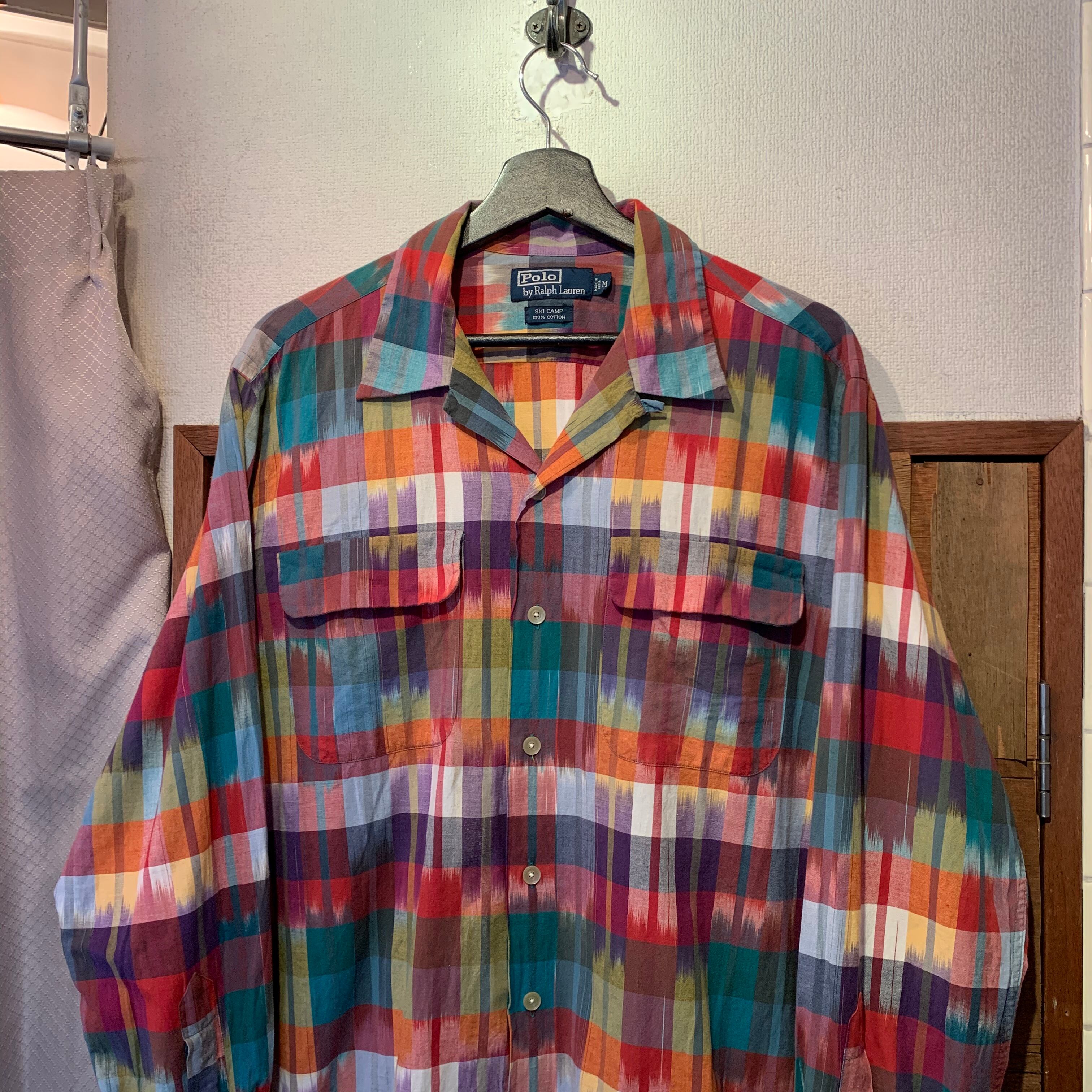 “Polo by Ralph Lauren” multi color repeating pattern L/S open-collar shirt