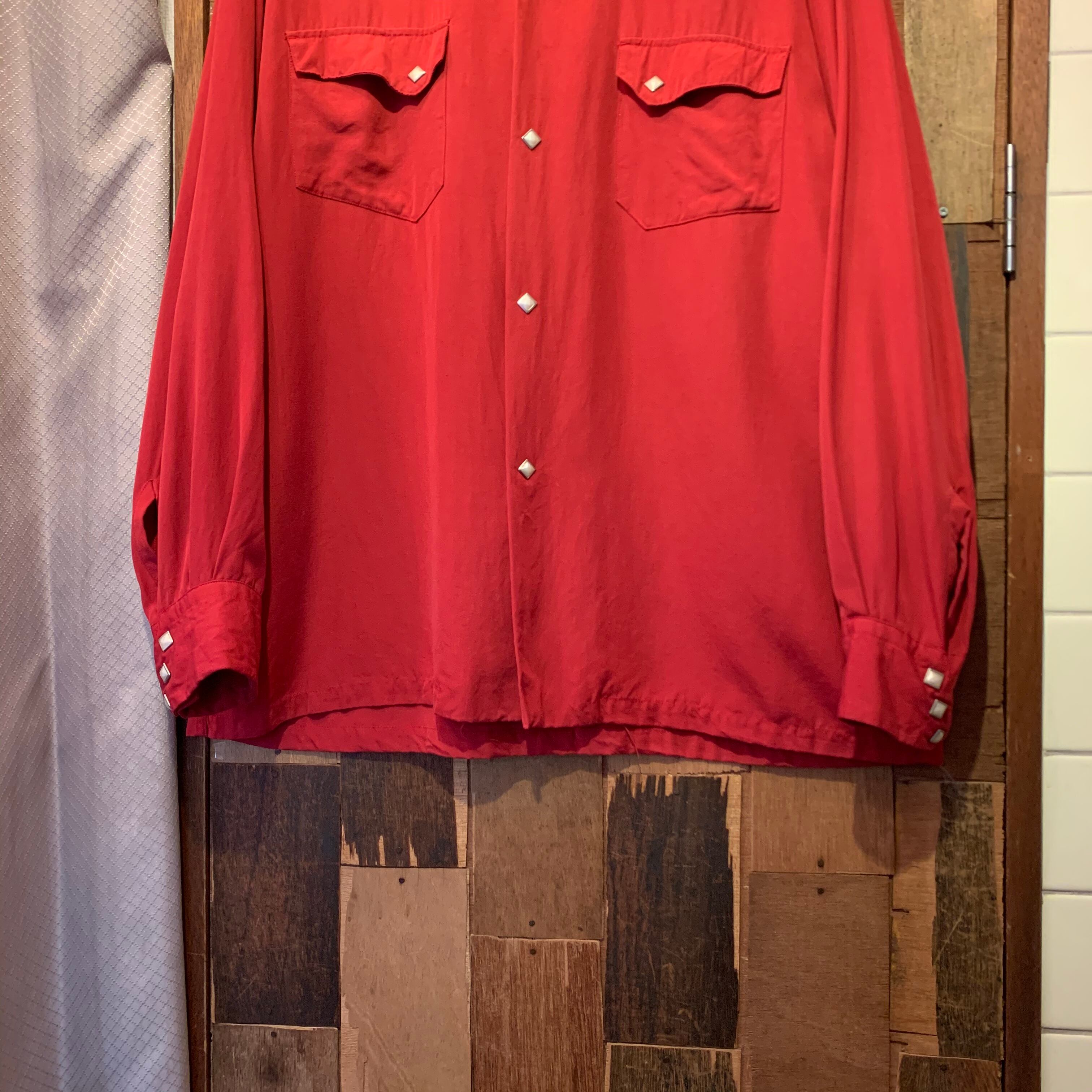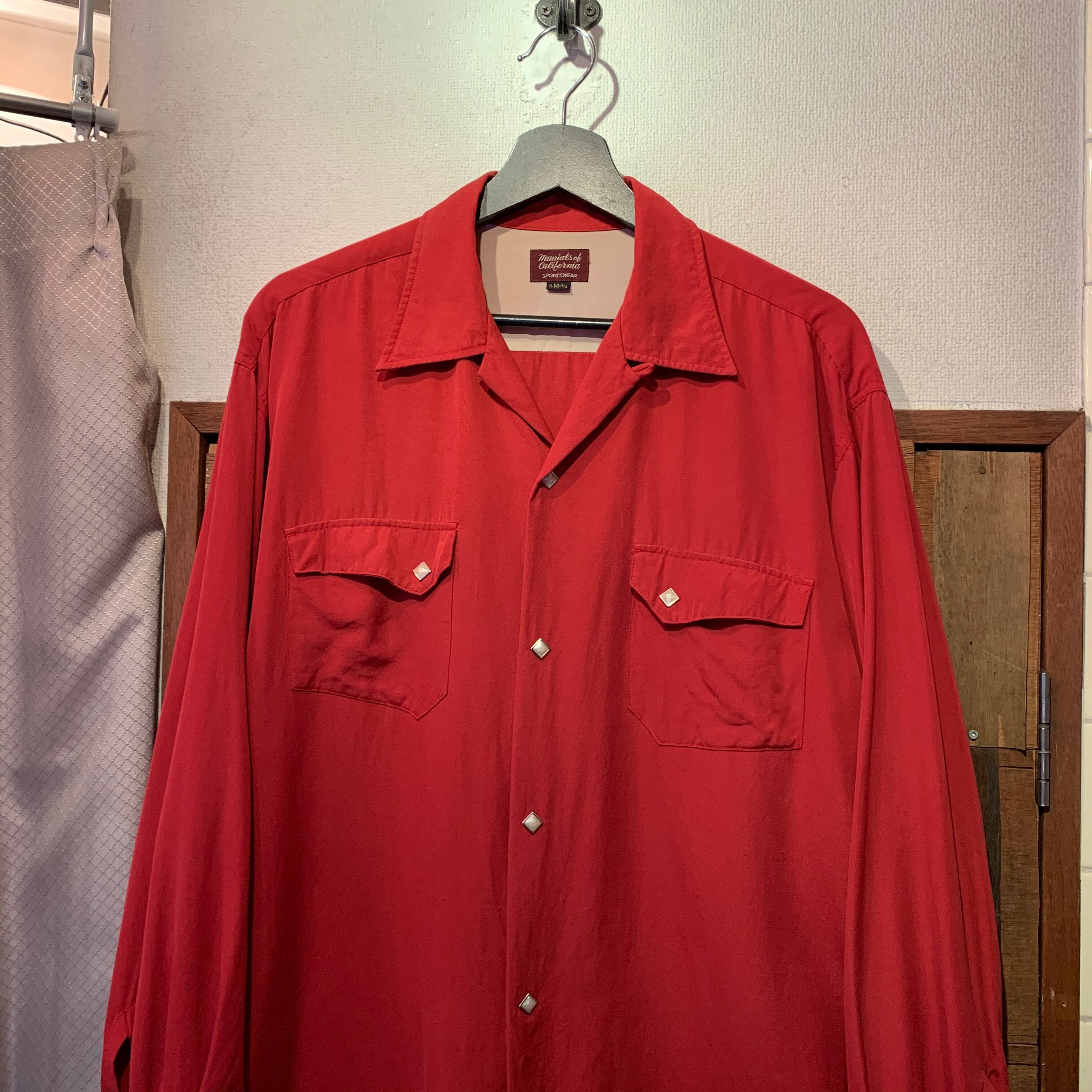 “manials of california” red rayon snap button design L/S open-collar shirt