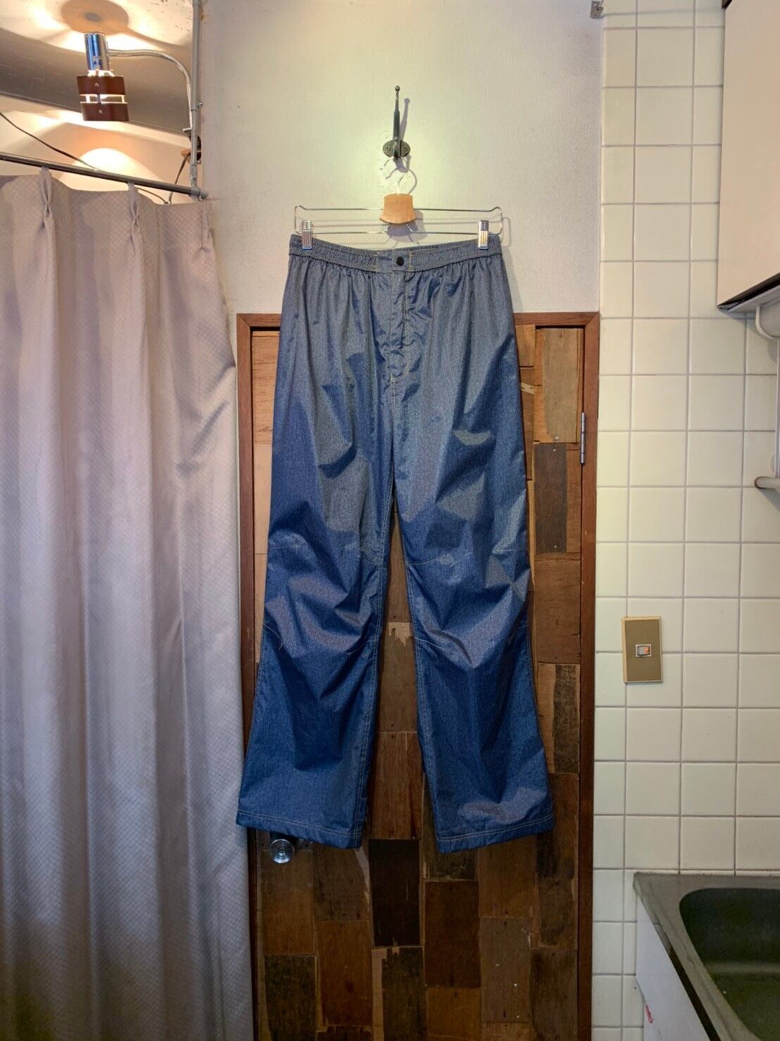 “Wrangler” indigo blue poly×PVC fake denim design pants