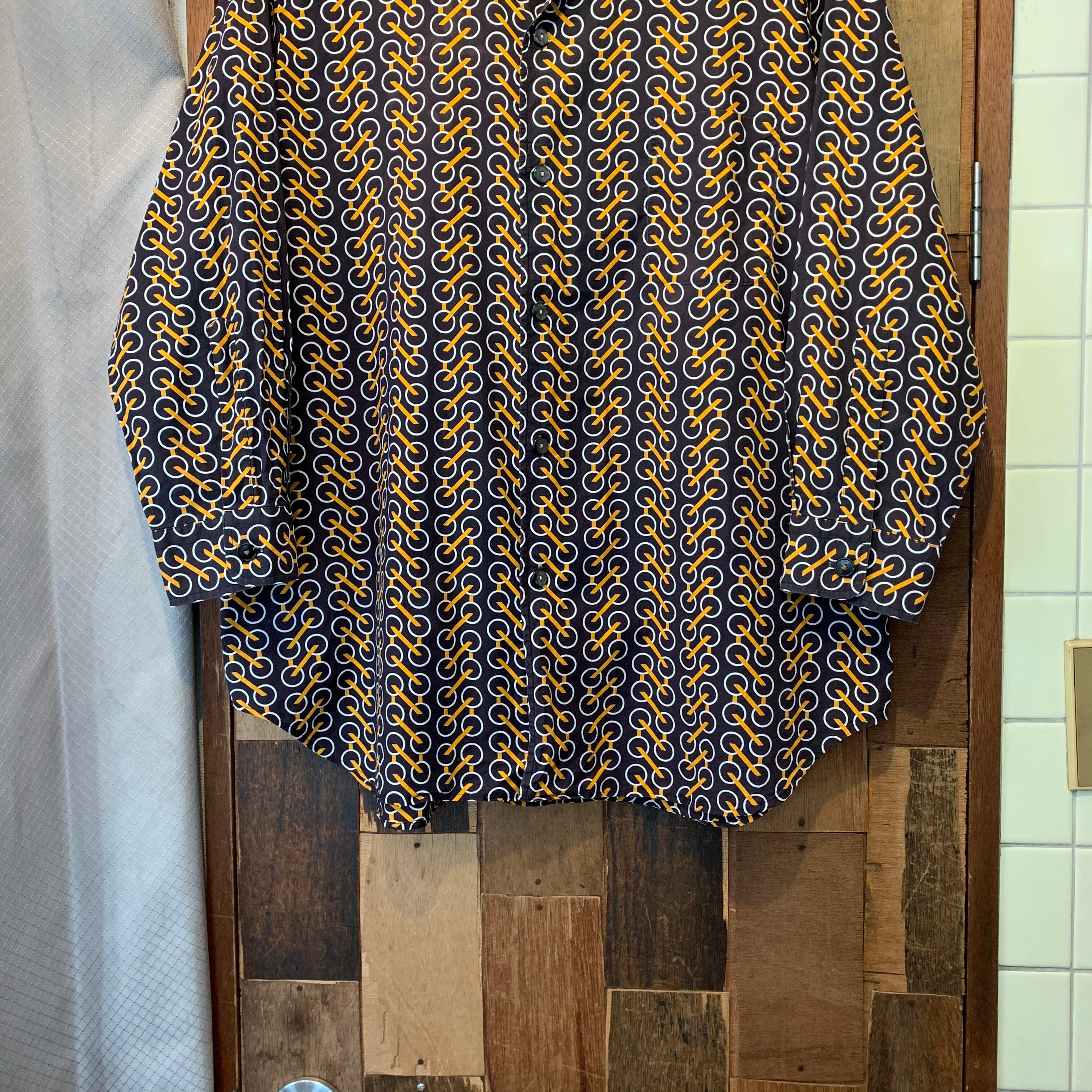 “brand unknown” charcoal×yellow×white repeating pattern L/S Italian-collar shirt