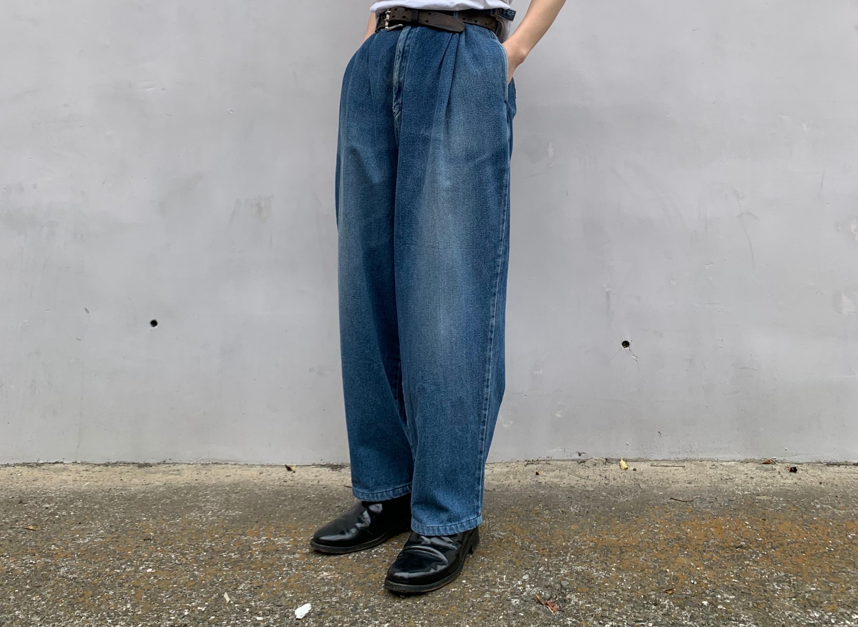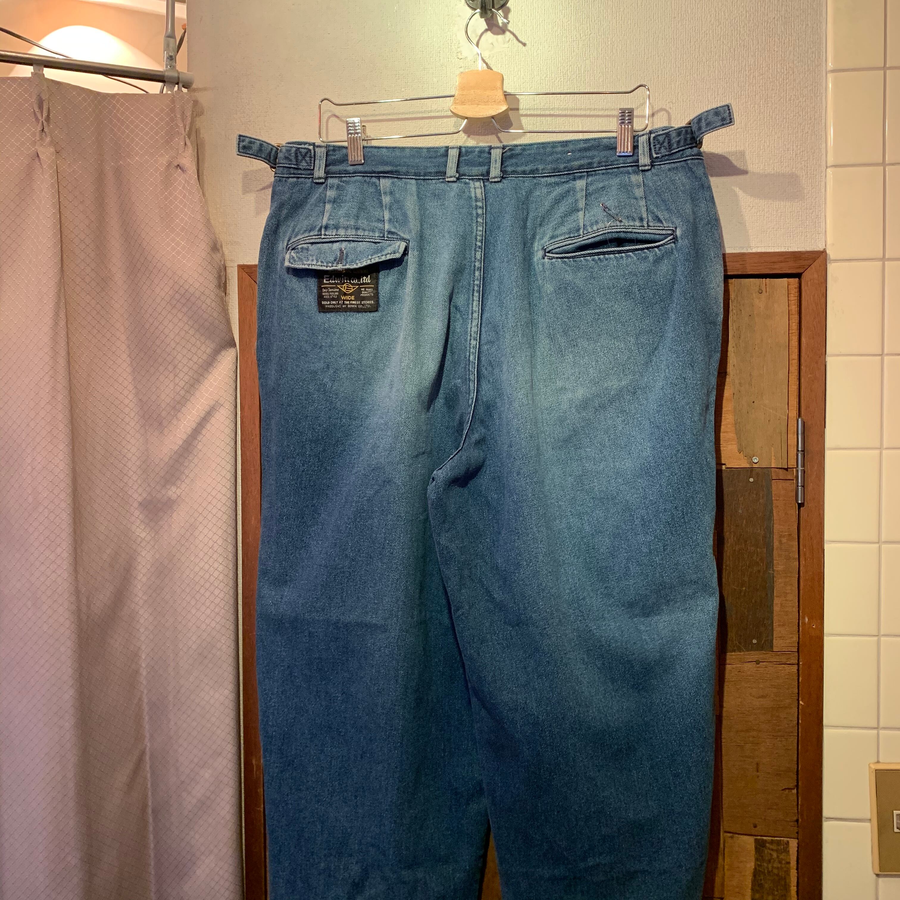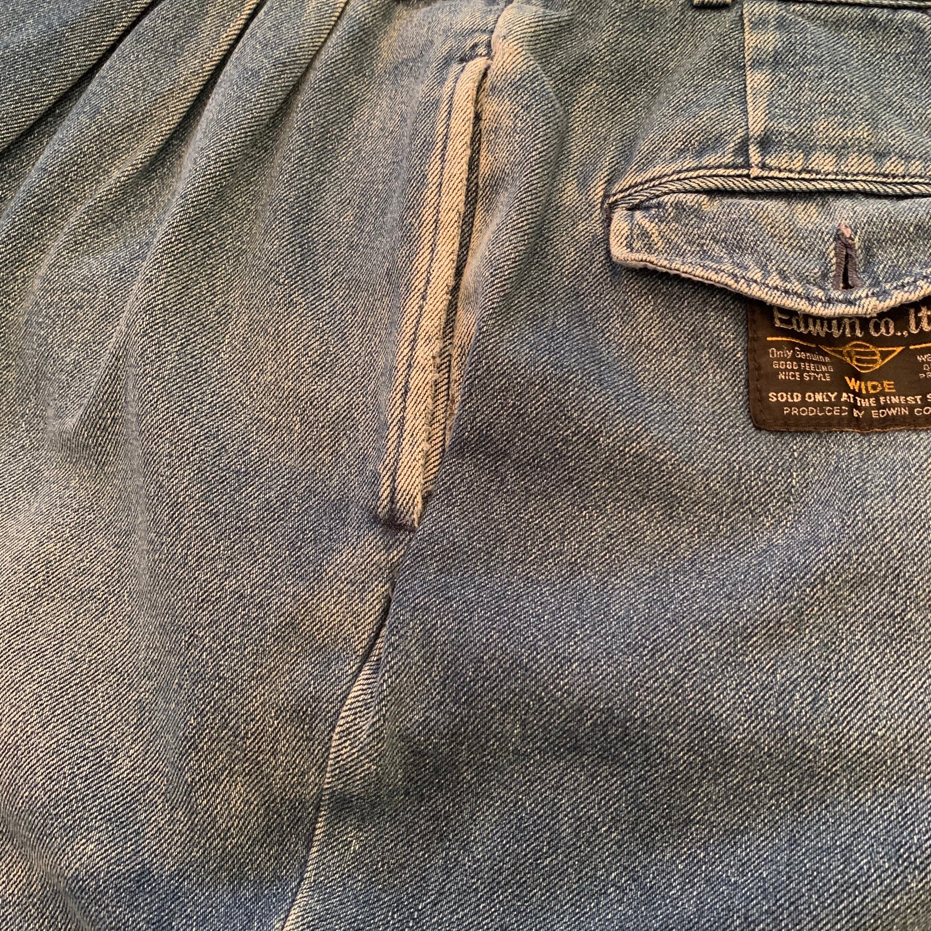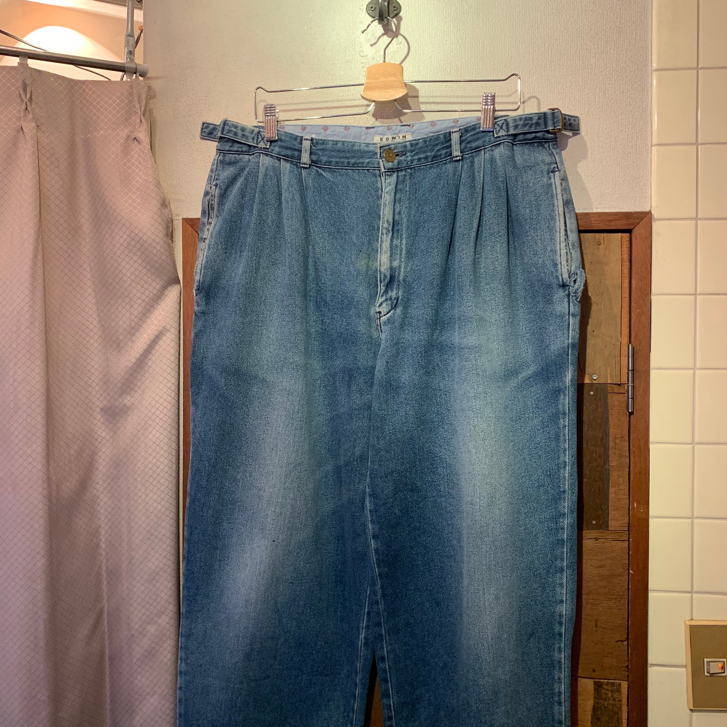 “EDWIN” 80’s indigo adjustable design 3tuck denim slacks