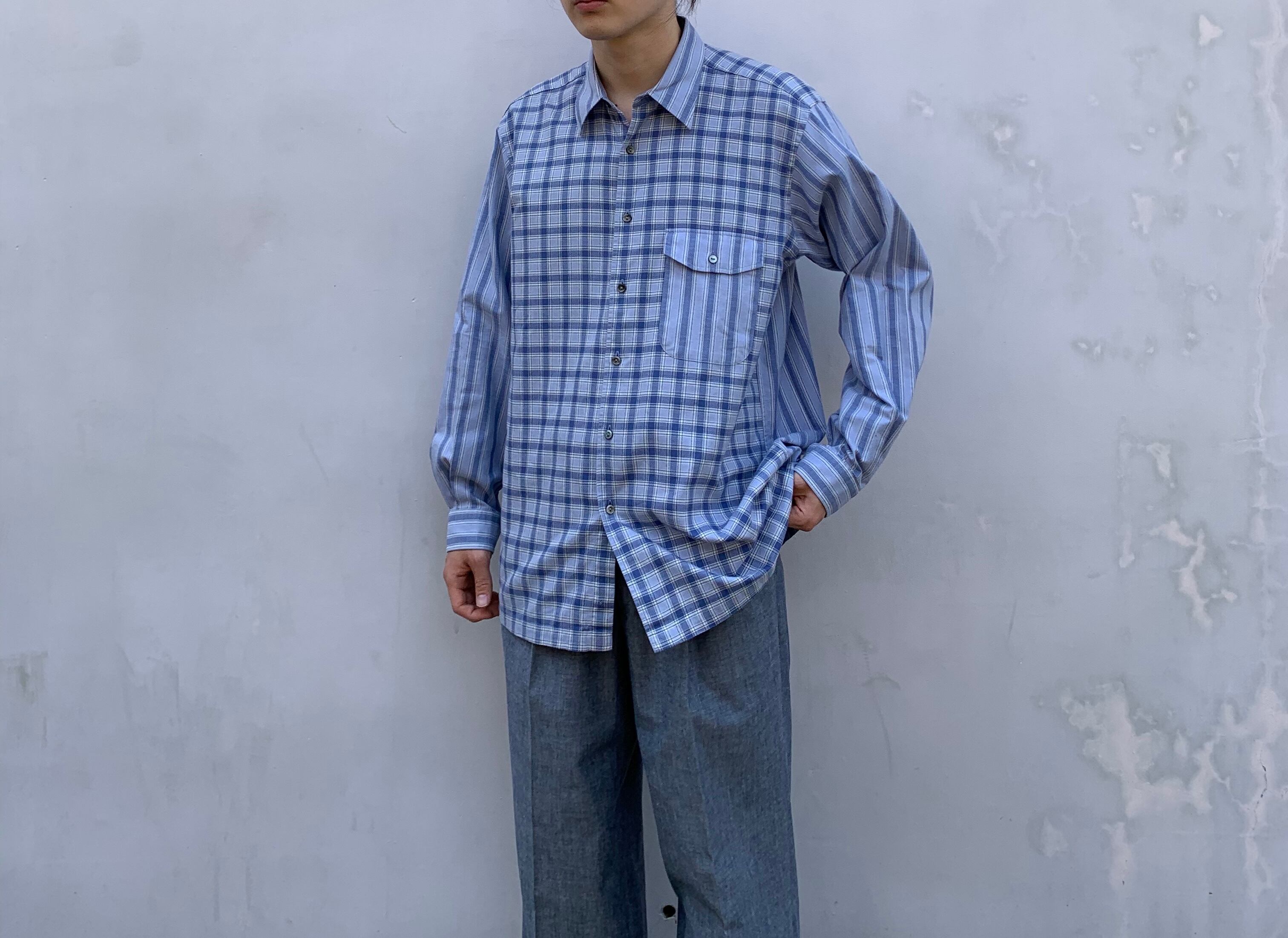 “PIERRE BALMAIN” light blue stripe&check pattern L/S shirt