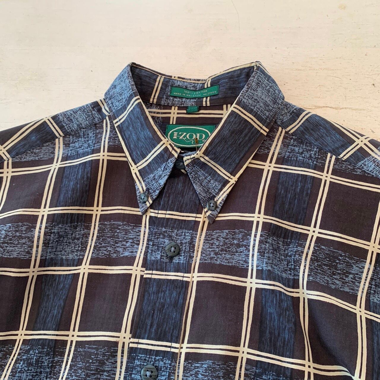 “IZOD” dark purple base cotton unique check pattern L/S shirt