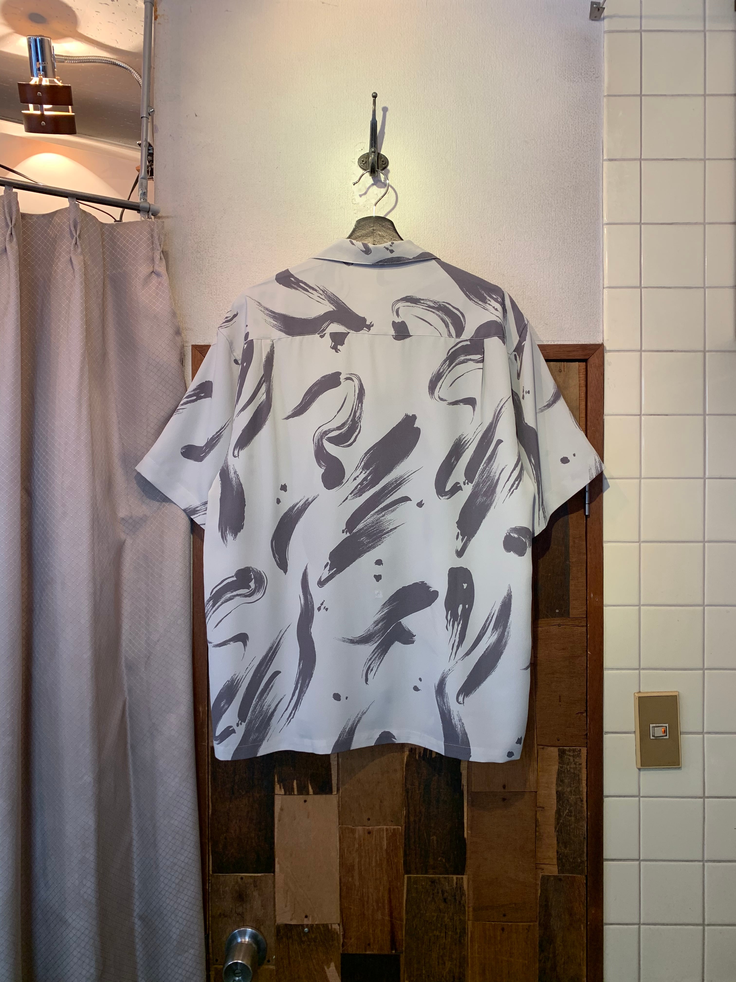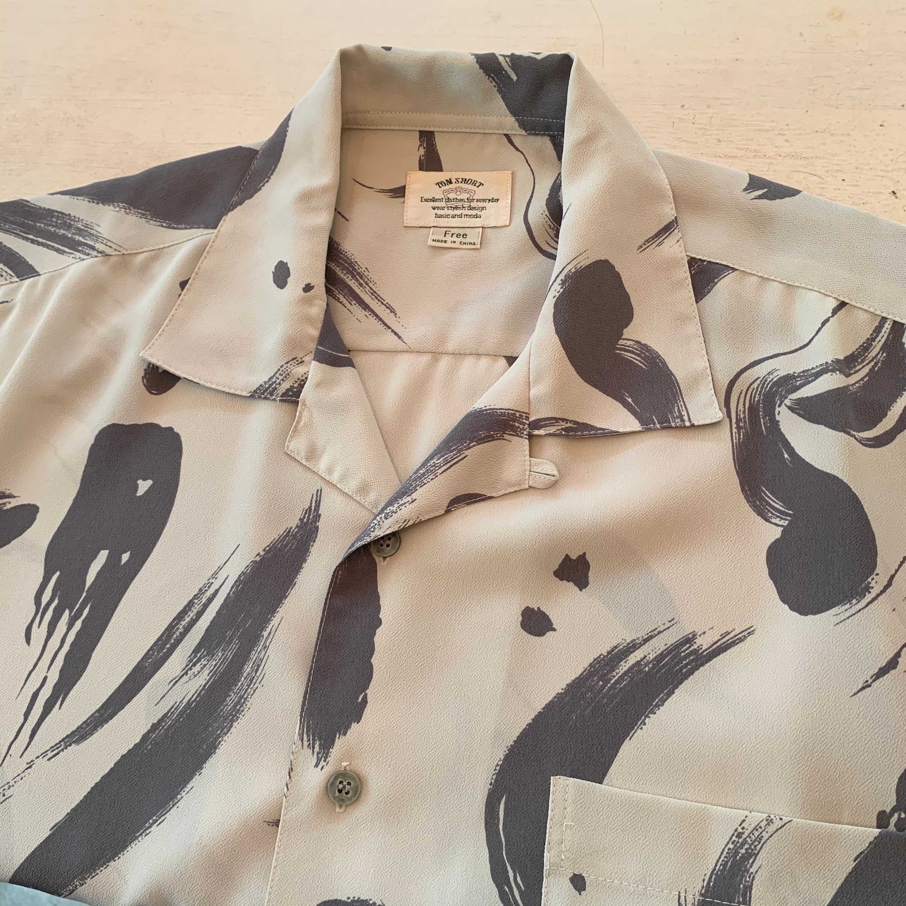 “TOM SHORT” white gray brush pattern S/S open-collar shirt