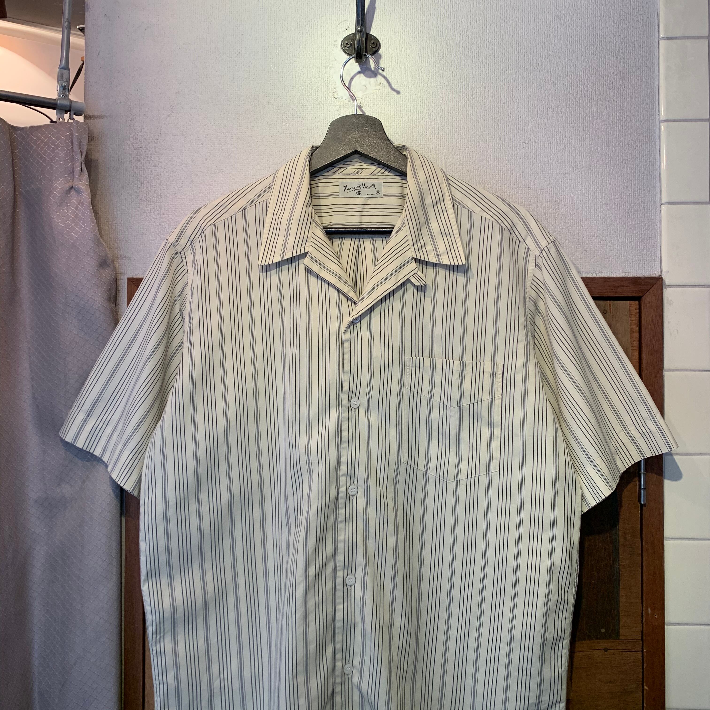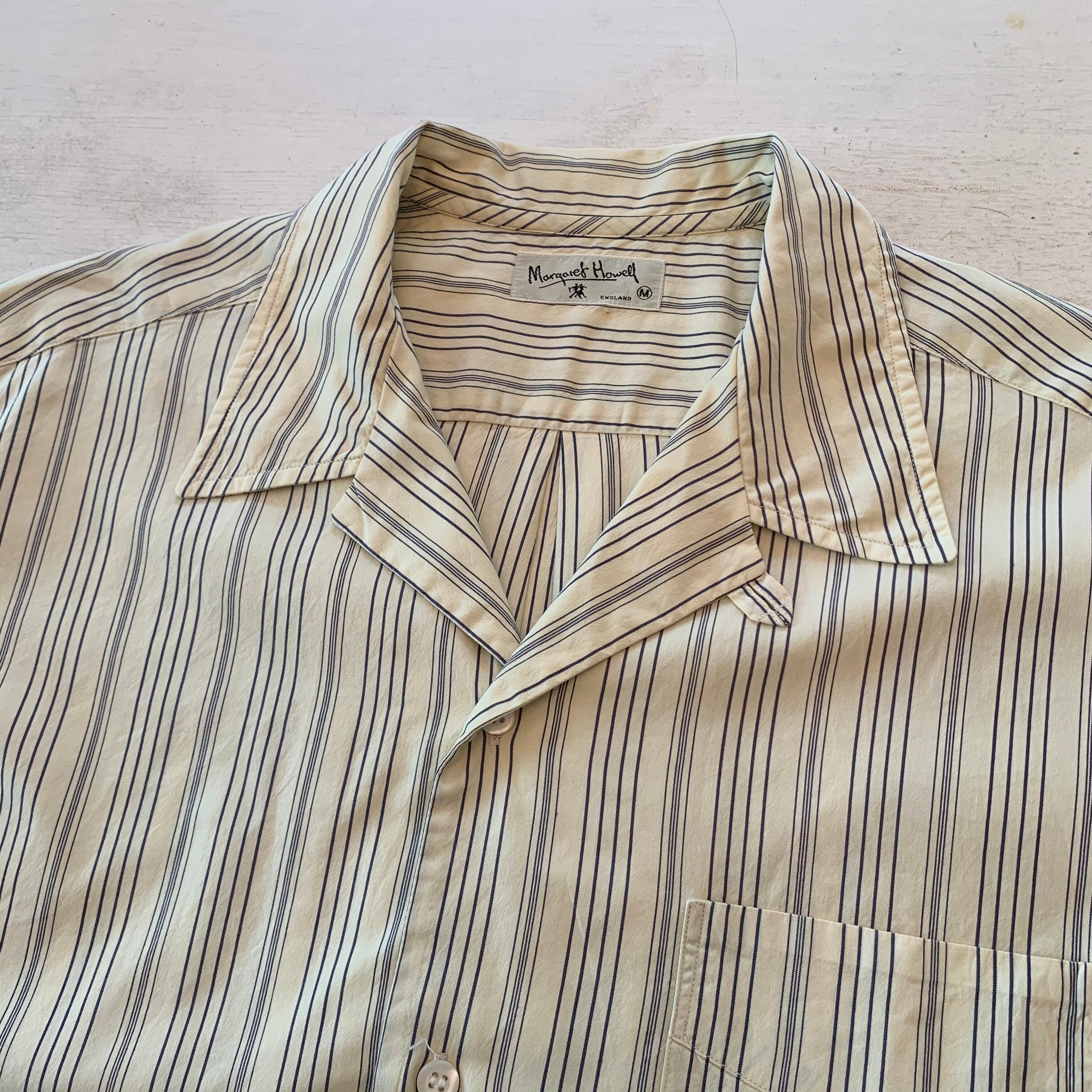 “Margaret Howell” ivory base cotton/cupra stripe pattern S/S shirt