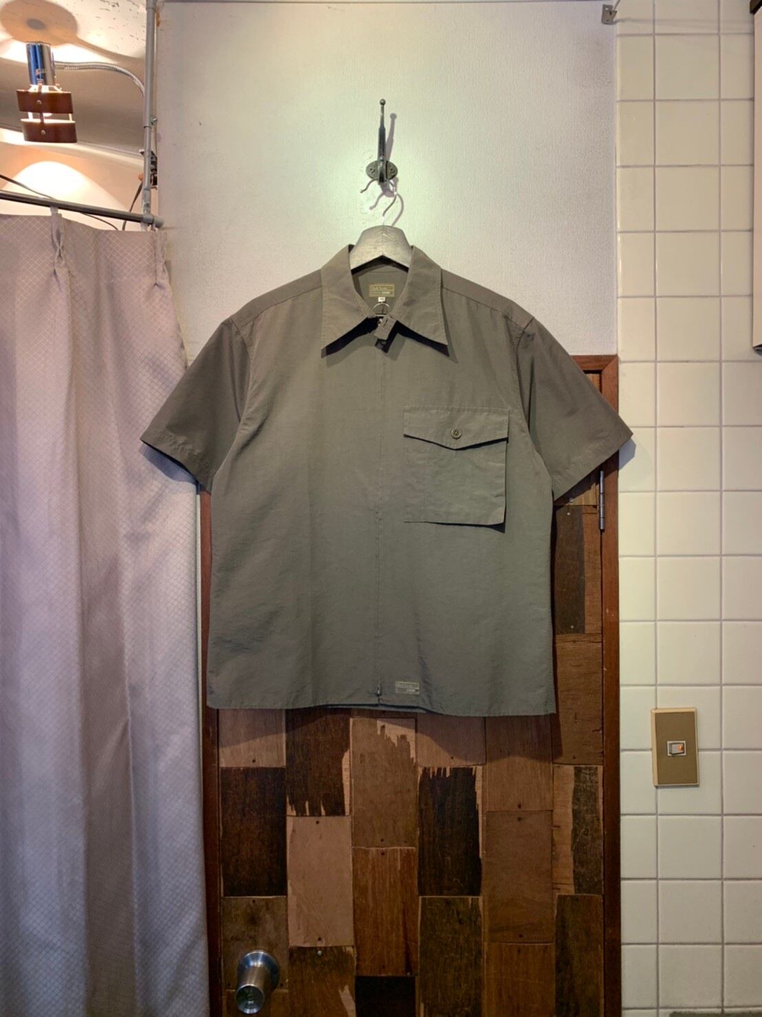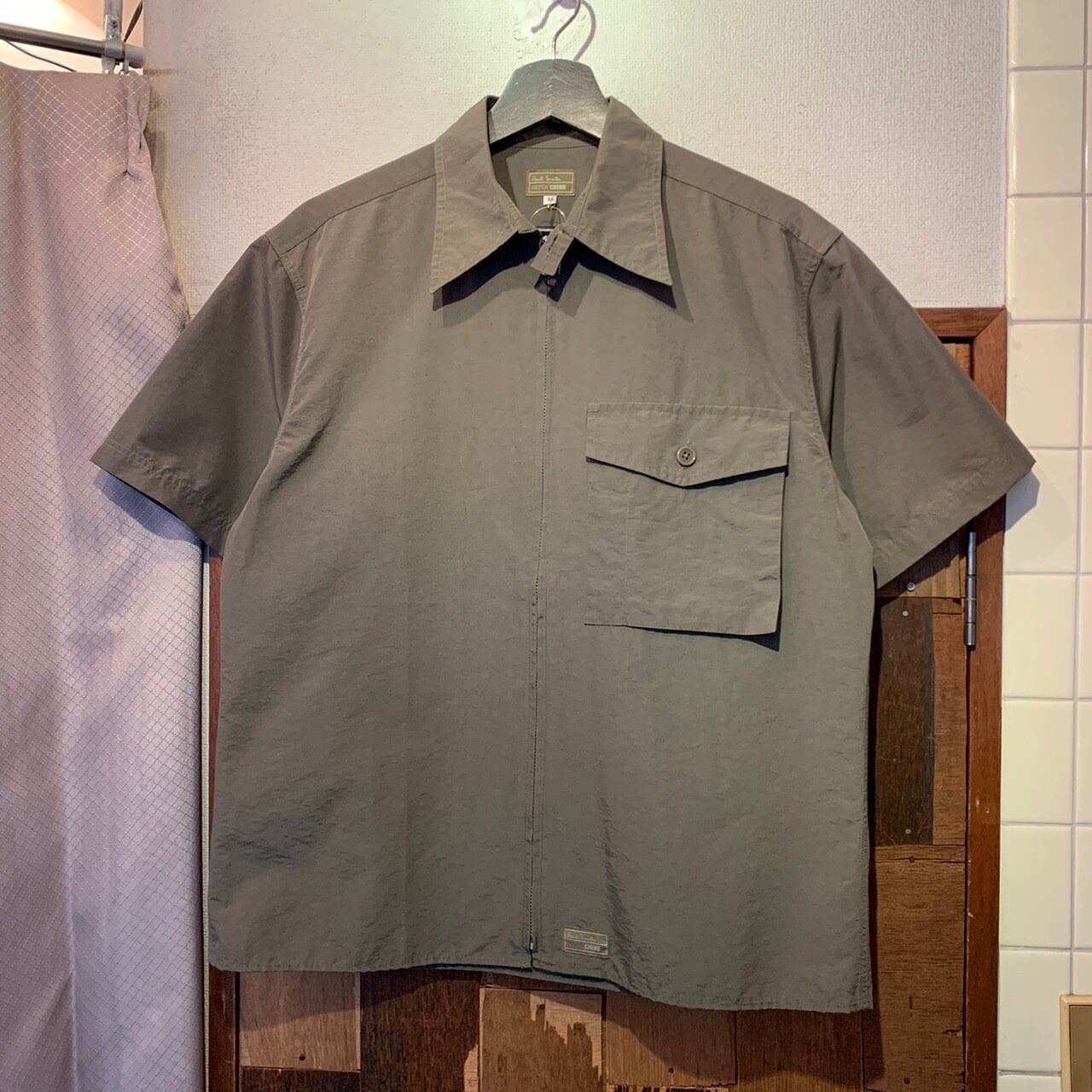 “Paul Smith” khaki cotton/nylon pocket design zip-up S/S shirt