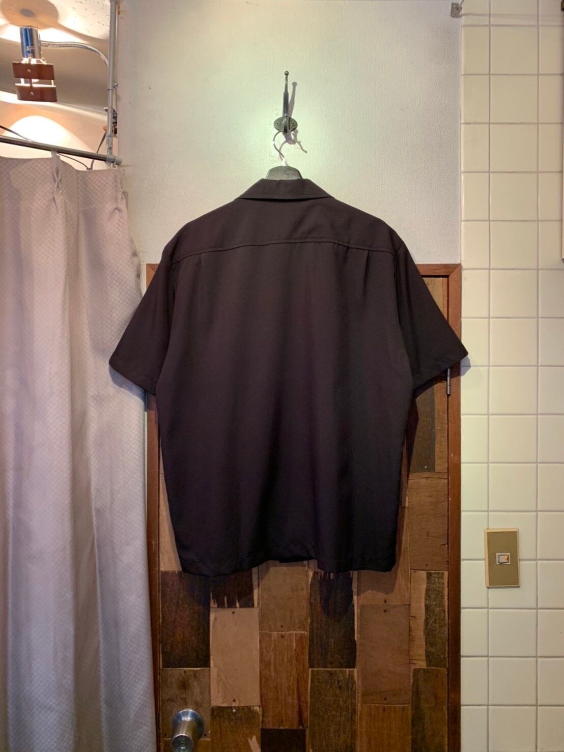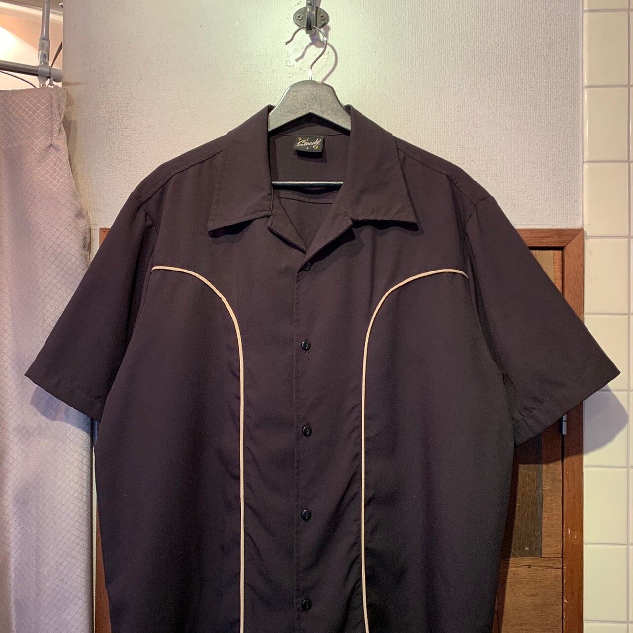 “steady” U.S.A black polyester piping design S/S open-collar shirt
