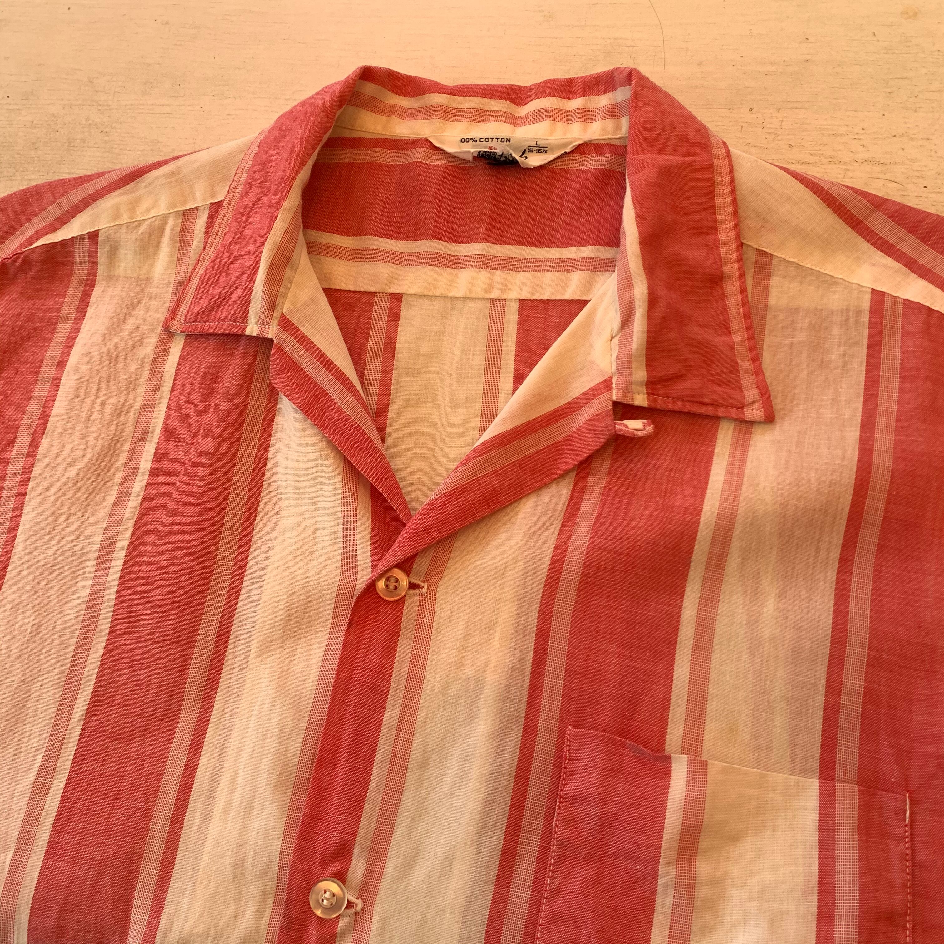 “VALMark” 60’s~70’s vintage rose red stripe pattern S/S open-collar shirt