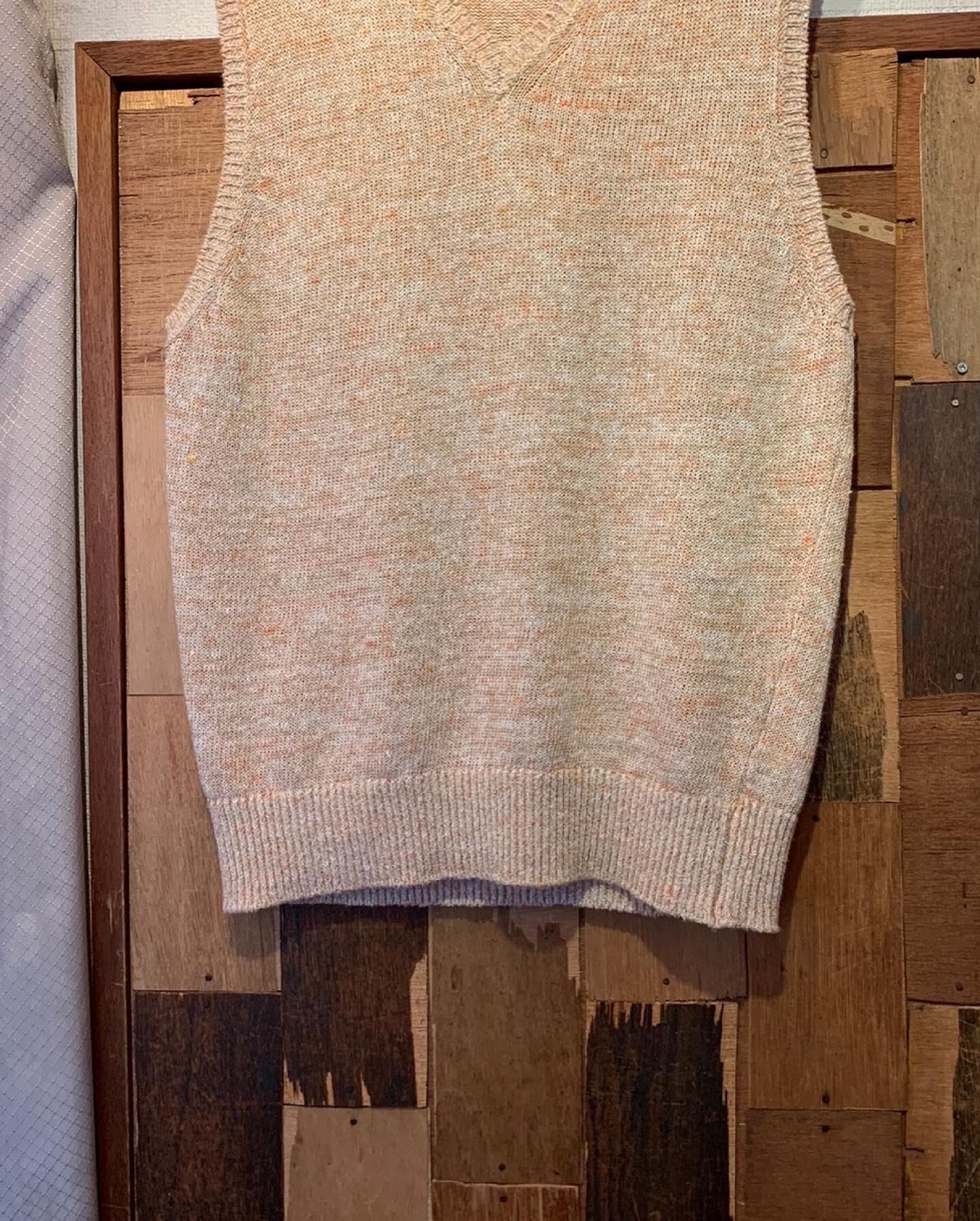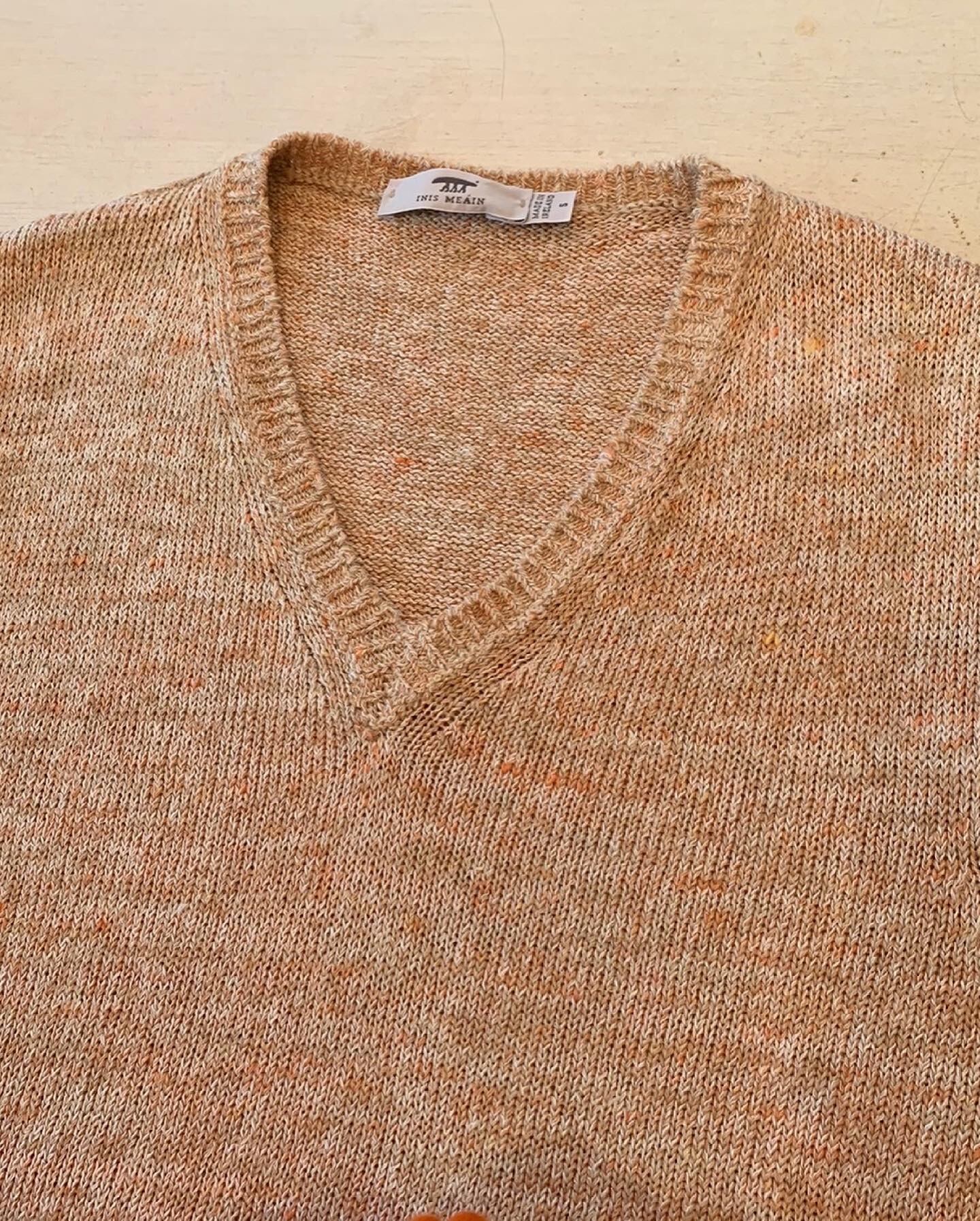 “INIS MEAIN” made in IRELAND light yellow beige linen nep design v-neck knit vest