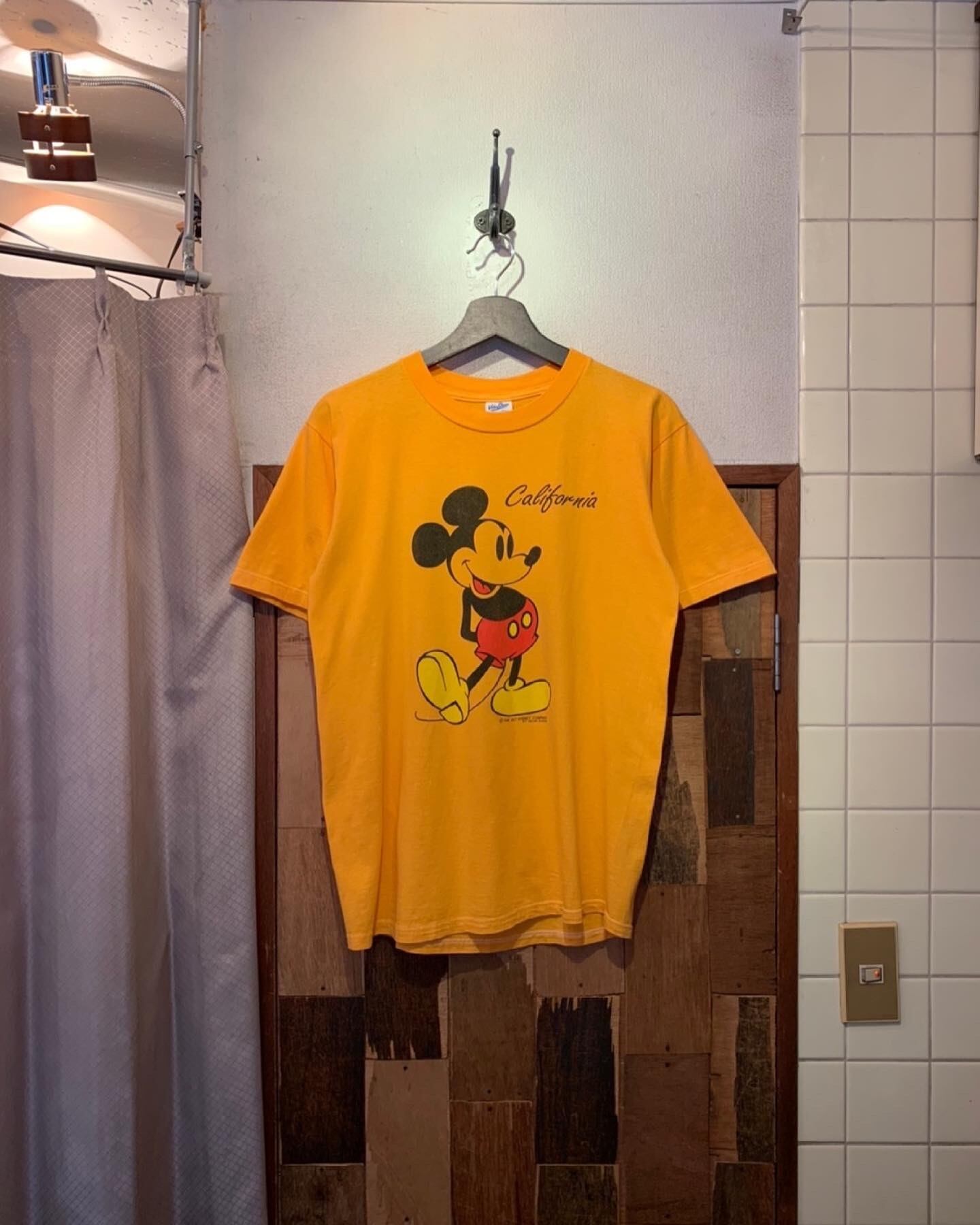 “Velva Sheen” 80's~U.S.A 「ミッキー・マウス」mustard yellow cotton character printed S/S T-shirt