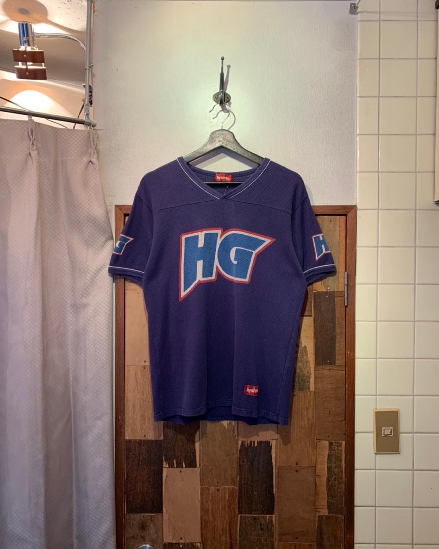 “hysteric” 90's~00's navy mesh cotton base S/S printed V-neck tee