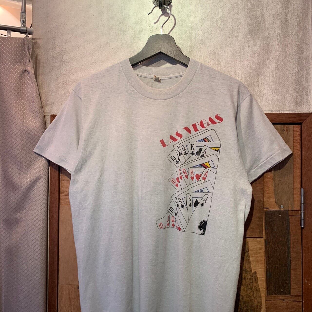 “SCREEN STARS” 70's~80's U.S.A white gray cotton/poly trump printed S/S T-shirt
