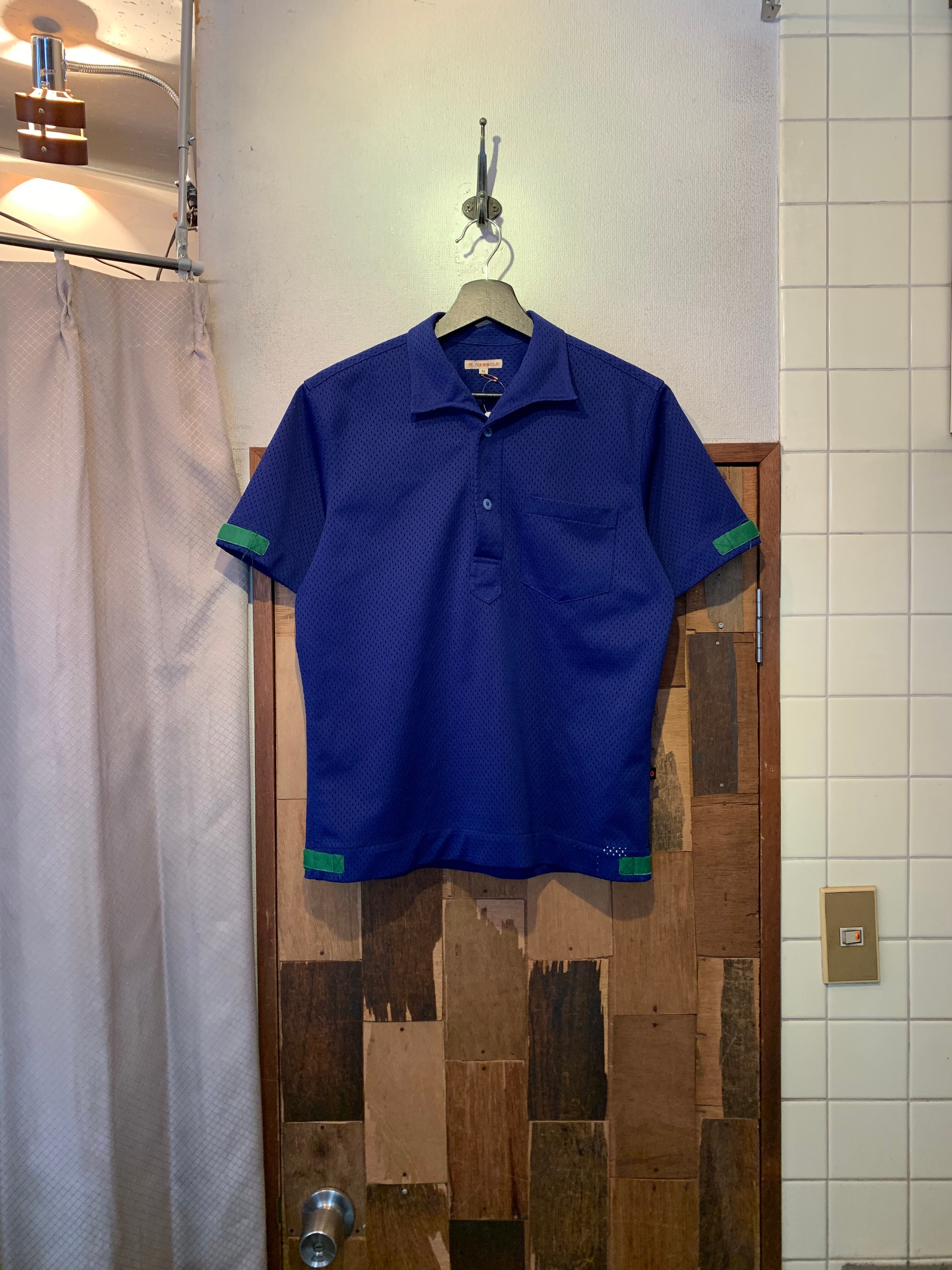 “R.NEWBOLD” blue velcro design S/S mesh polo shirt