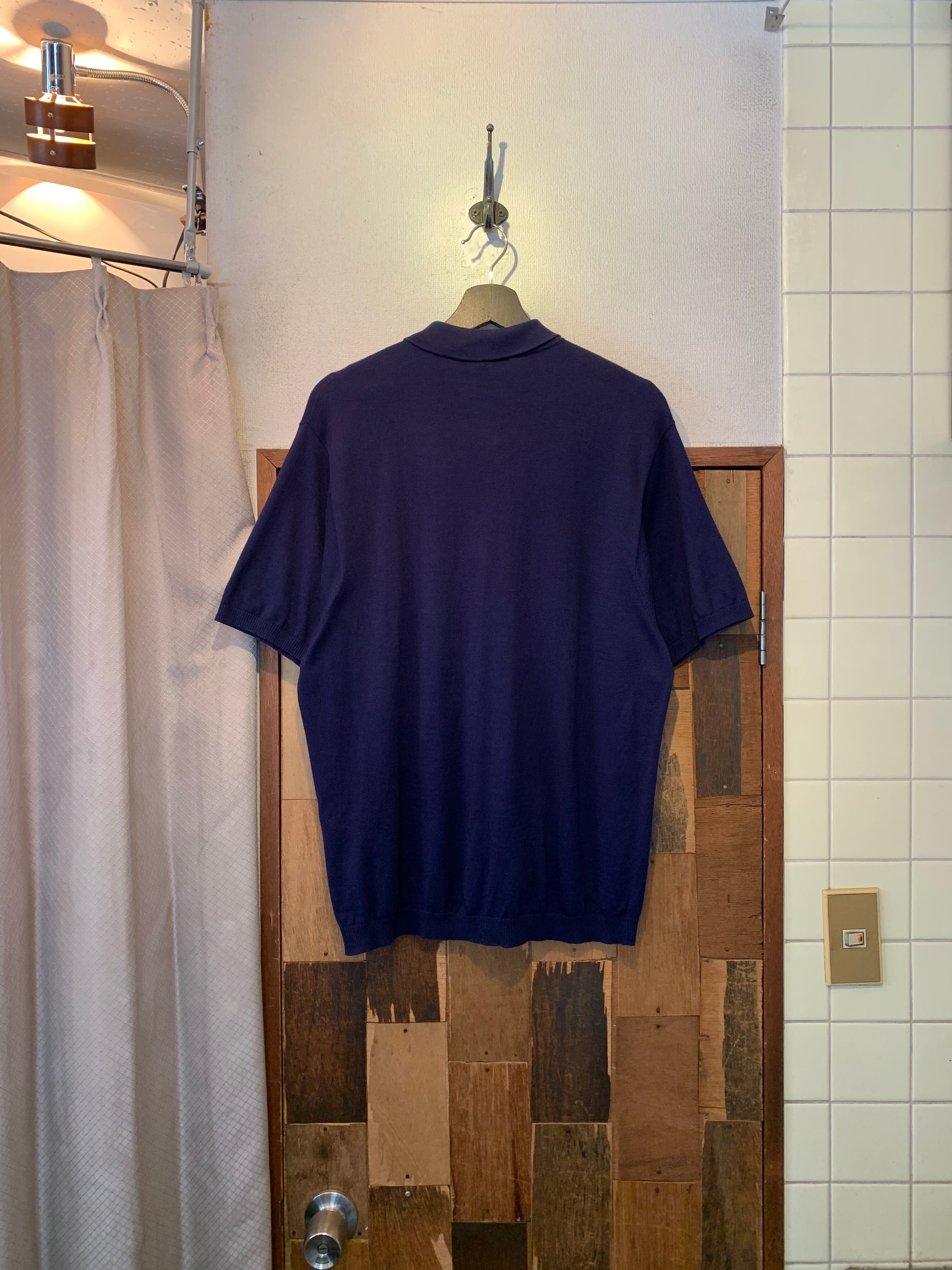 “Supreme” navy point logo S/S knit polo shirt