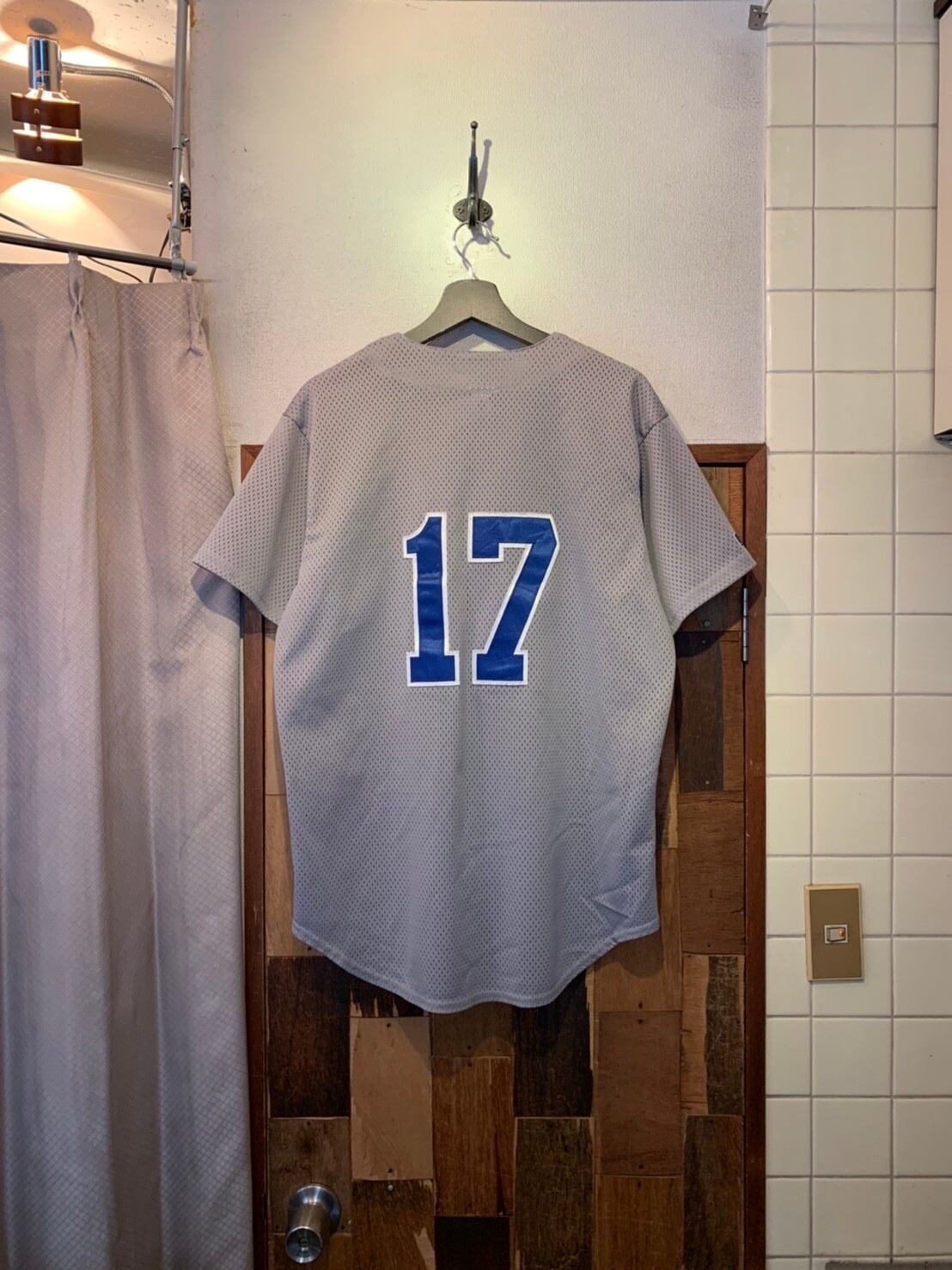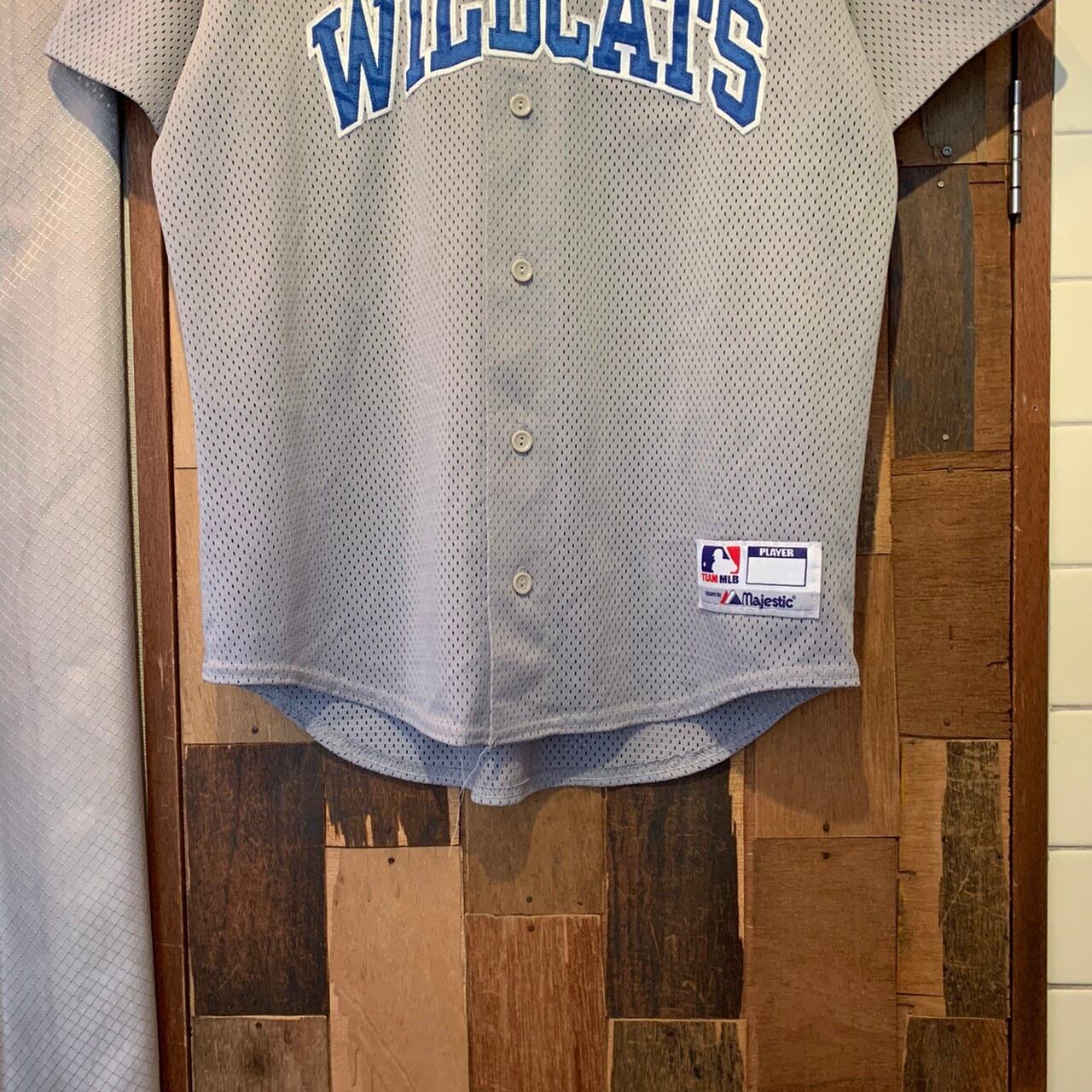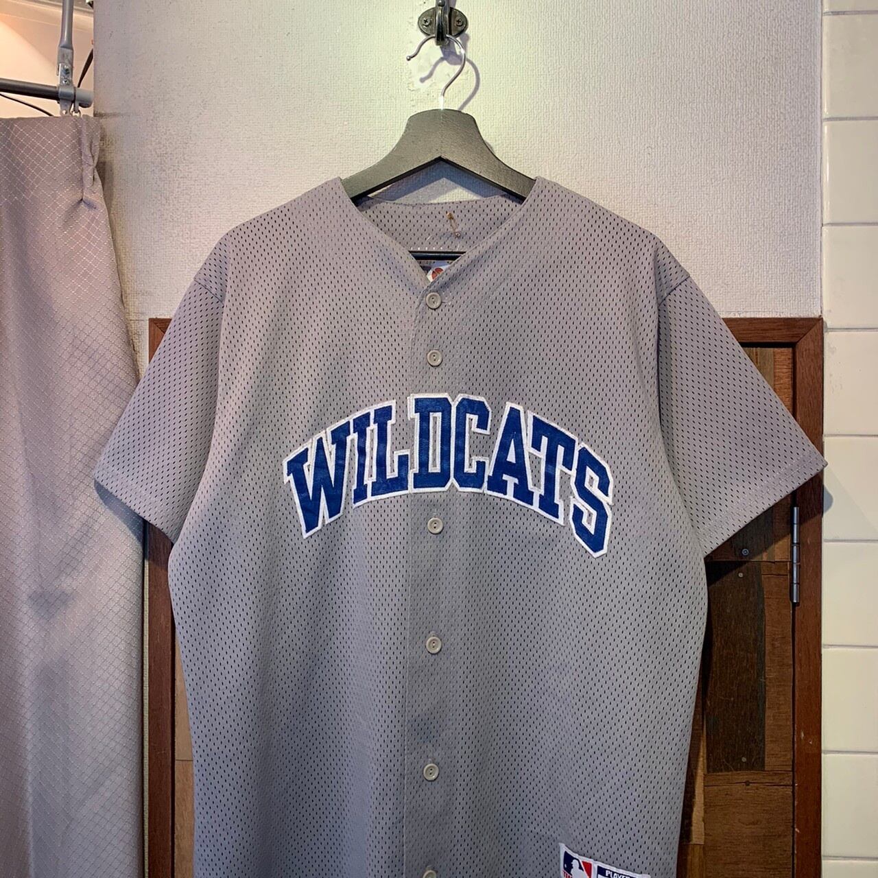 “MAJESTIC” gray×blue×white mesh baseball shirt