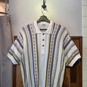“pitti” dead stock white base cotton repeating pattern S/S knit polo shirt