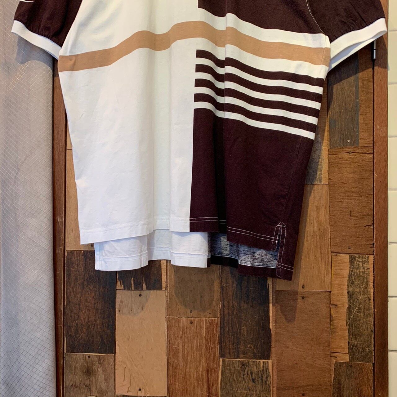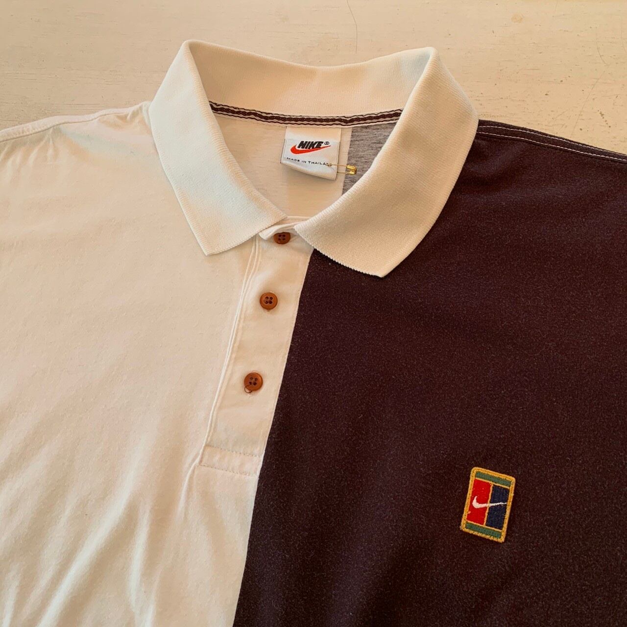 “NIKE” 90's dead stock white×charcoal brown base wappen design S/S polo shirt