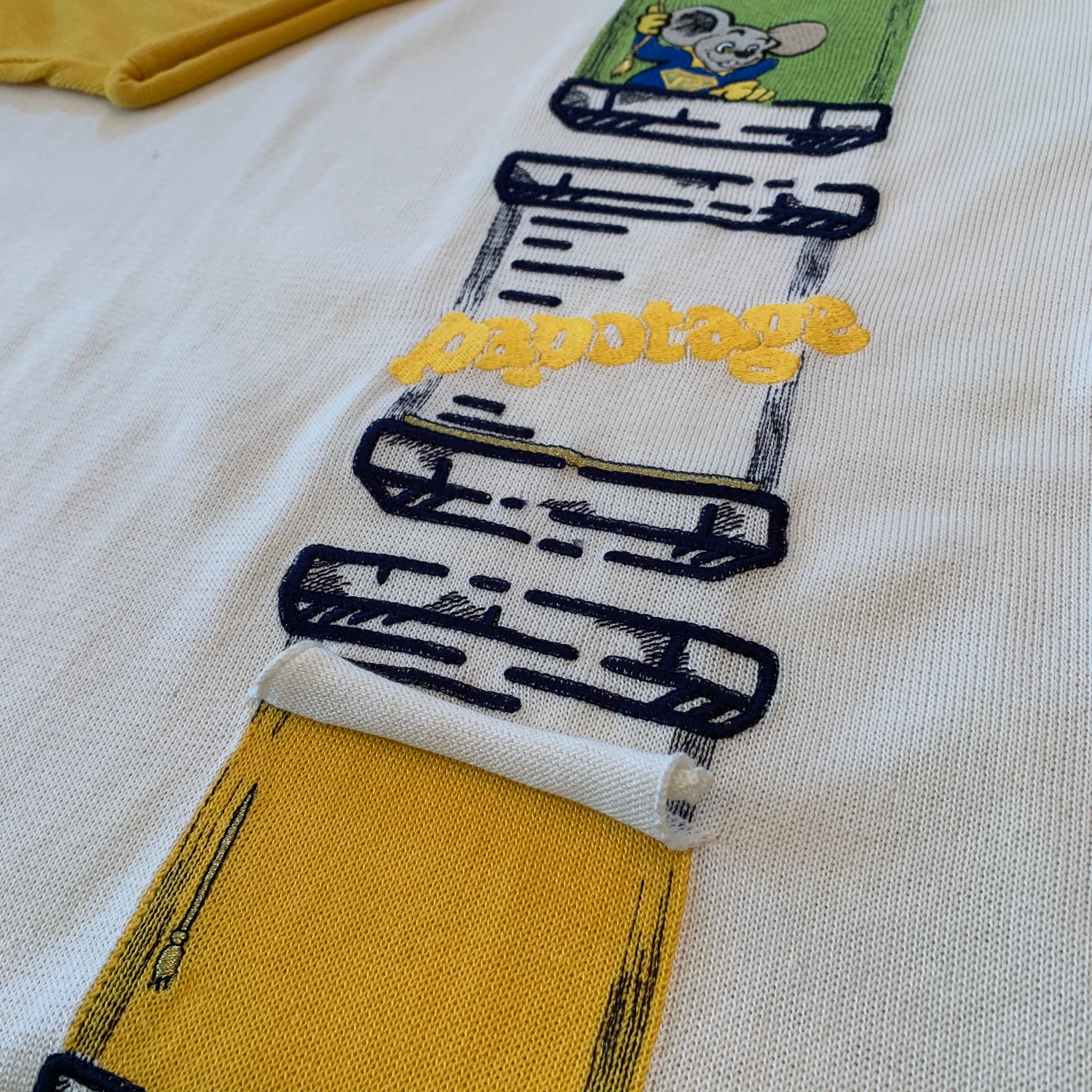 “papotage” white×black×yellow×light green character embroidery design S/S knit sweater