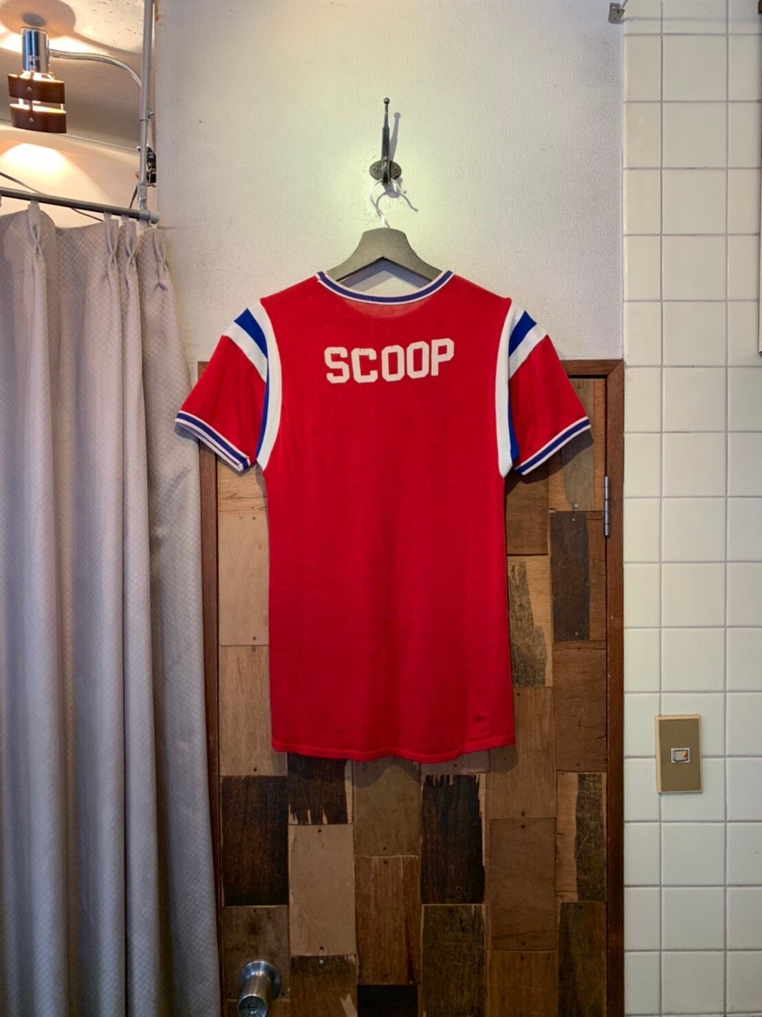 “brand unknown” 60's~vintage red×blue×white printed S/S ringer T-shirt
