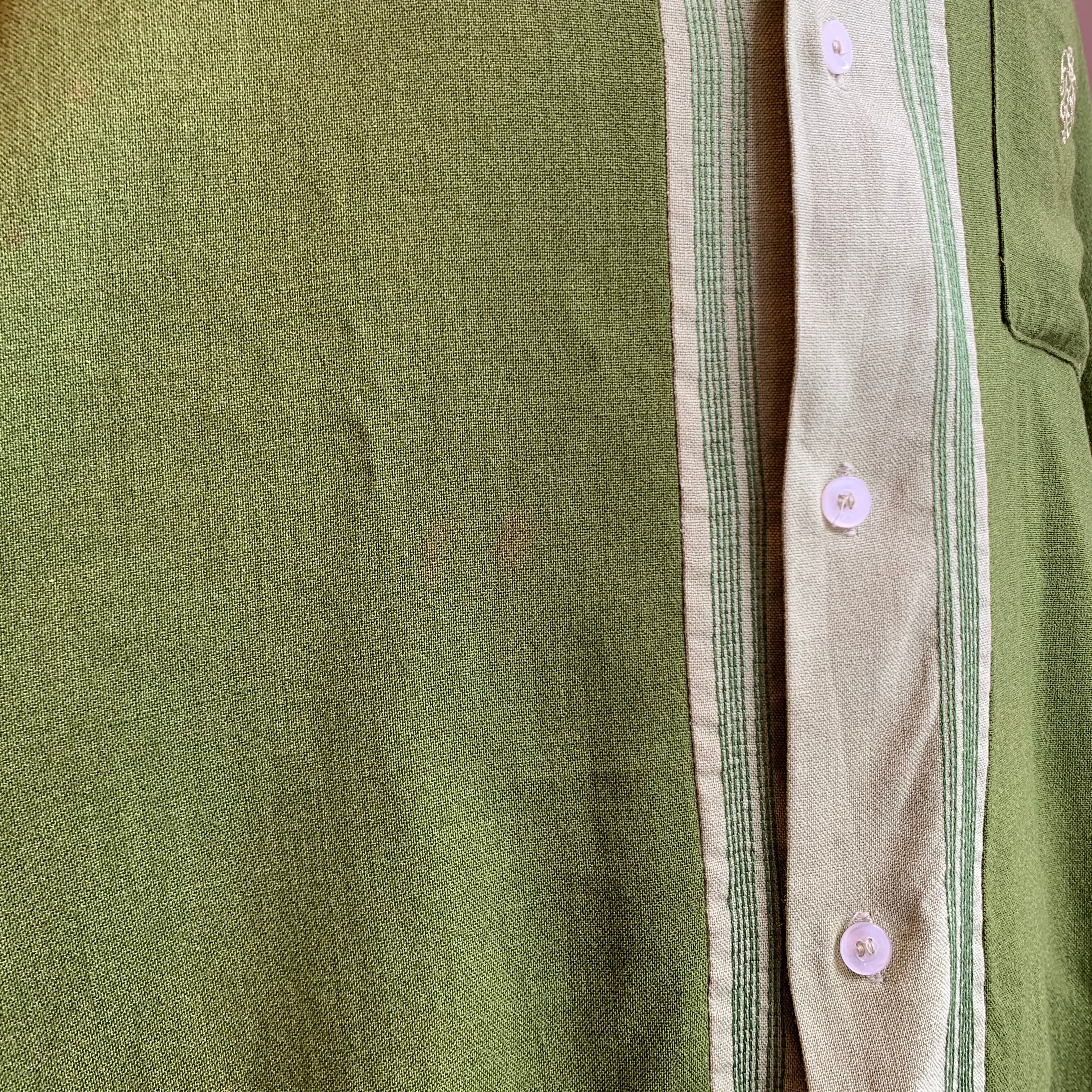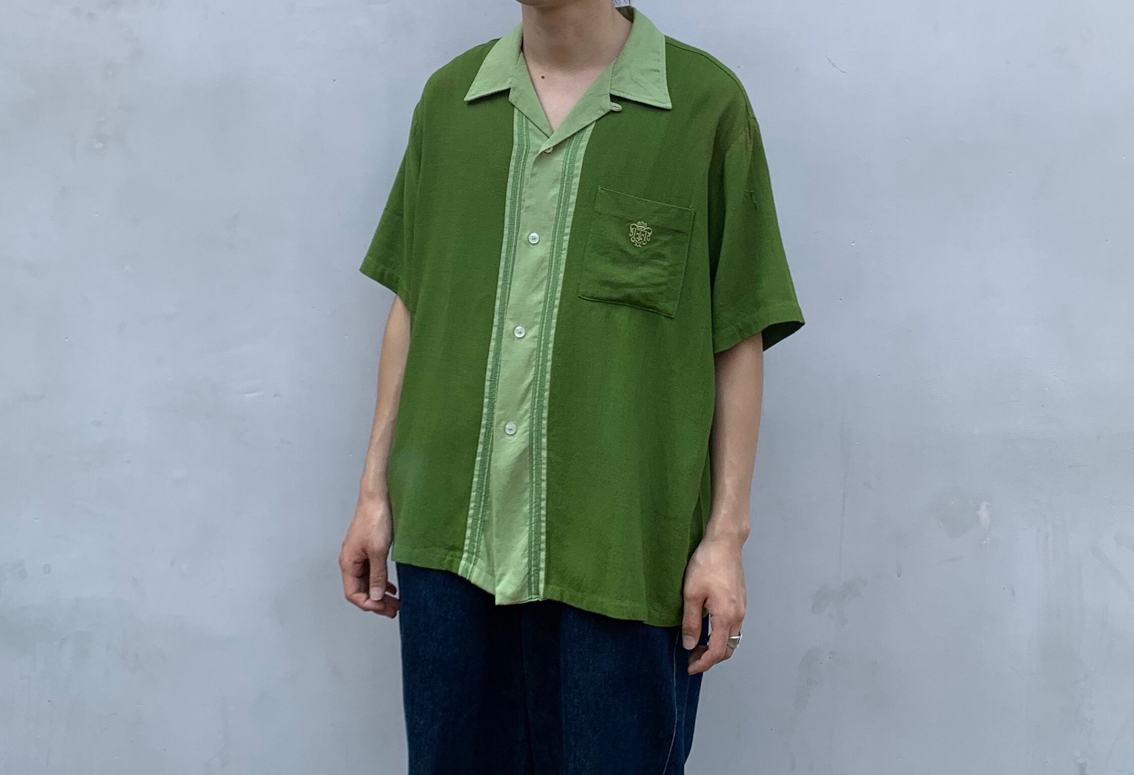 “TOWNCRAFT” 60’s vintage green base rayon design S/S open-collar shirt
