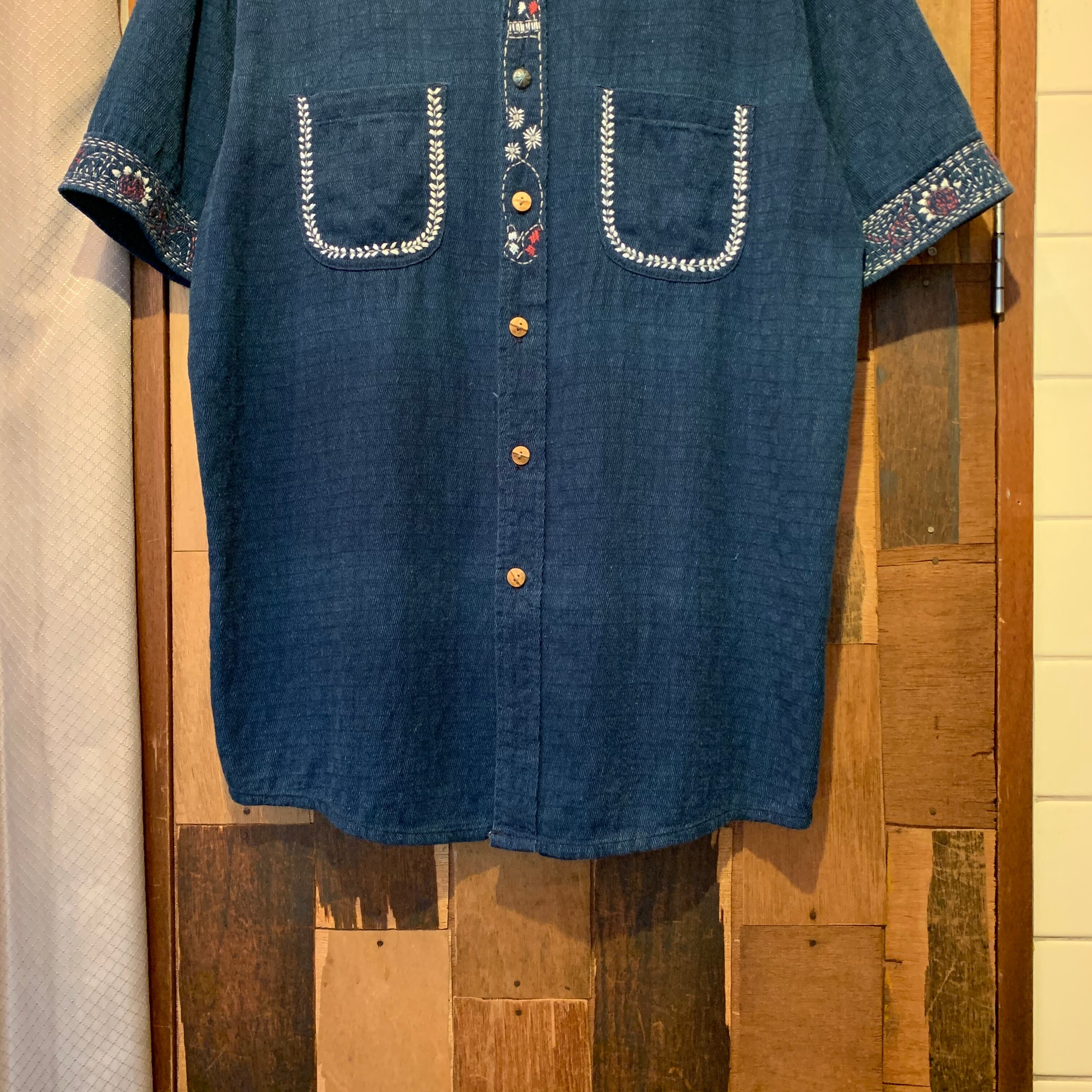 “5CHAKA” indigo embroidery design S/S shirt