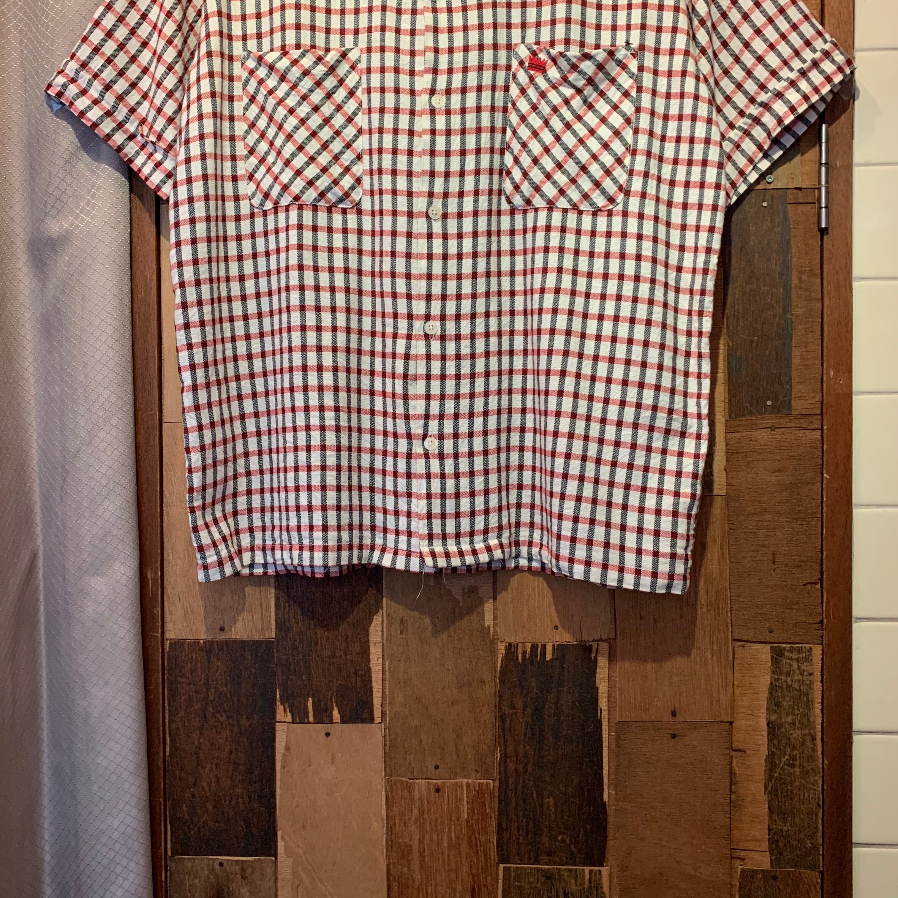 “STUSSY” white×red×black cotton/rayon check pattern S/S shirt