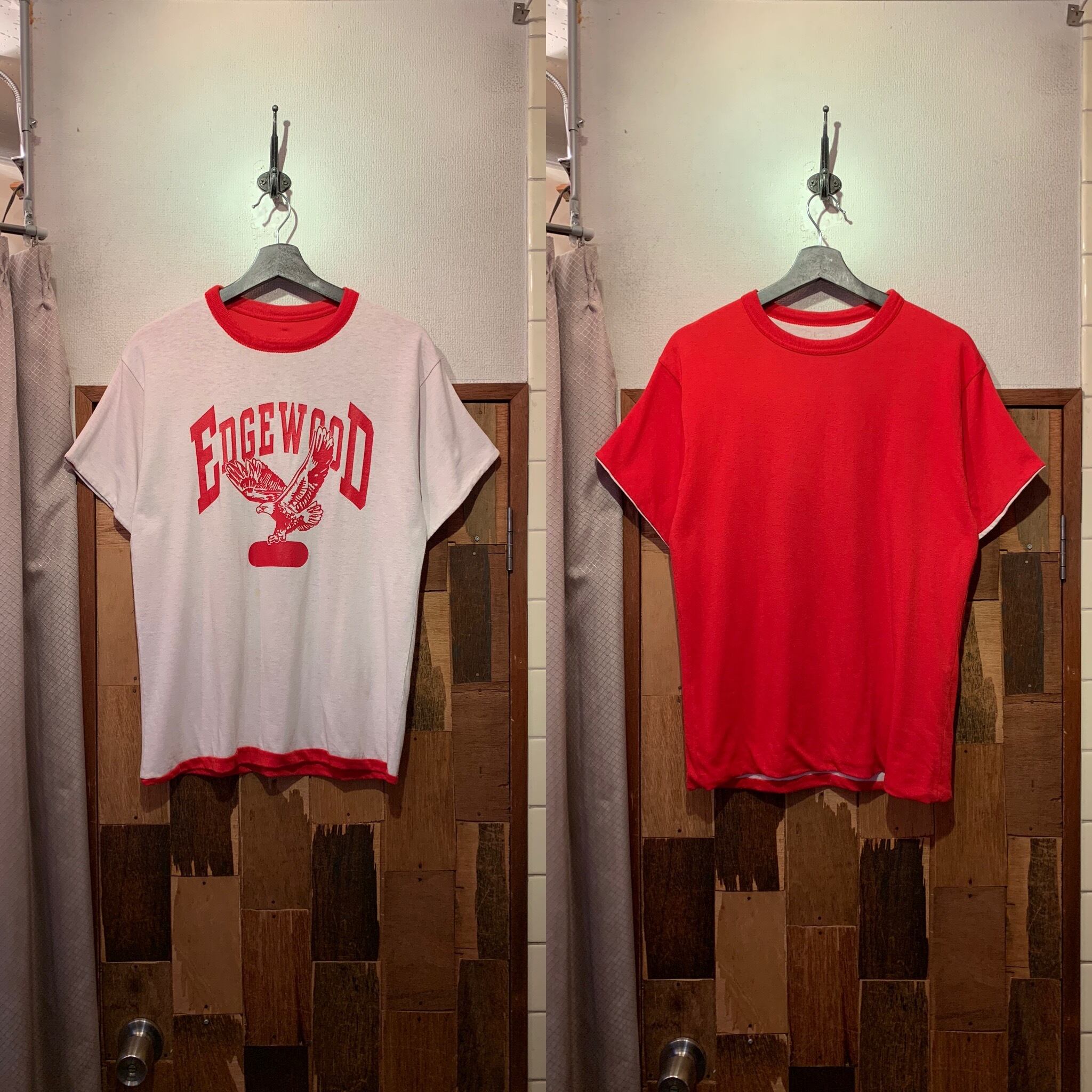 “brand unknown” 80’s white×red printed reversible S/S T-shirt