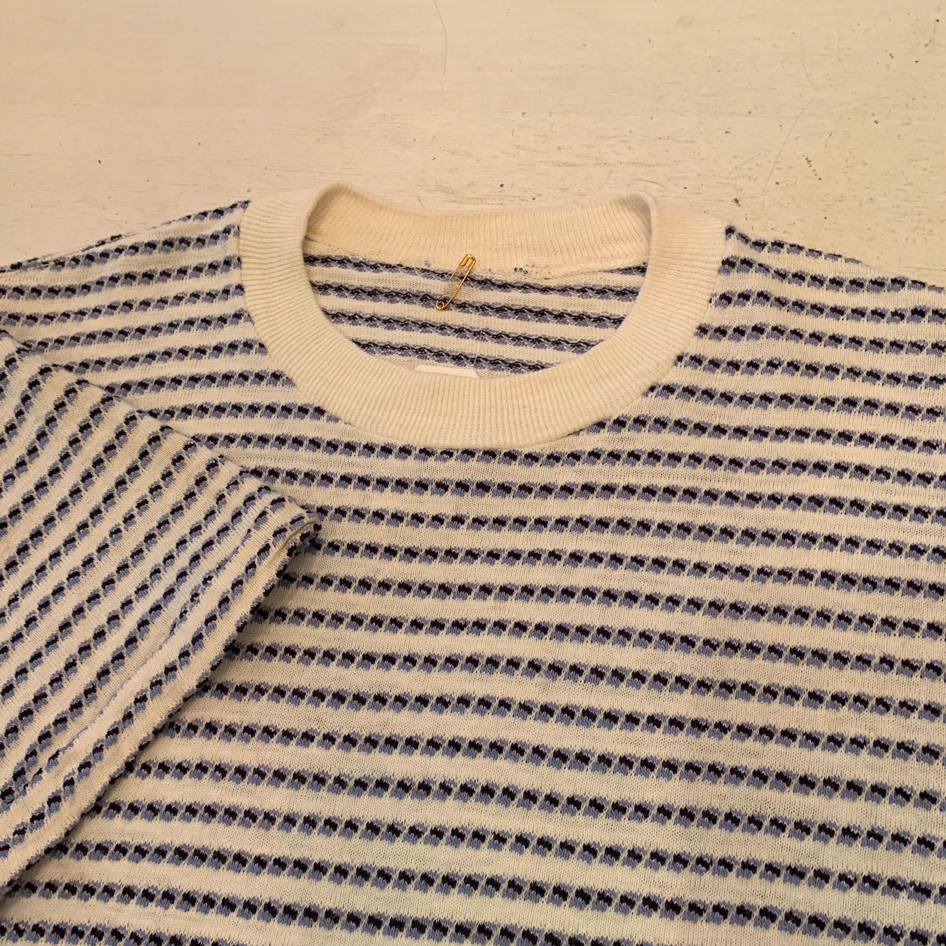 “brand unknown” ivory base repeating pattern S/S T-shirt