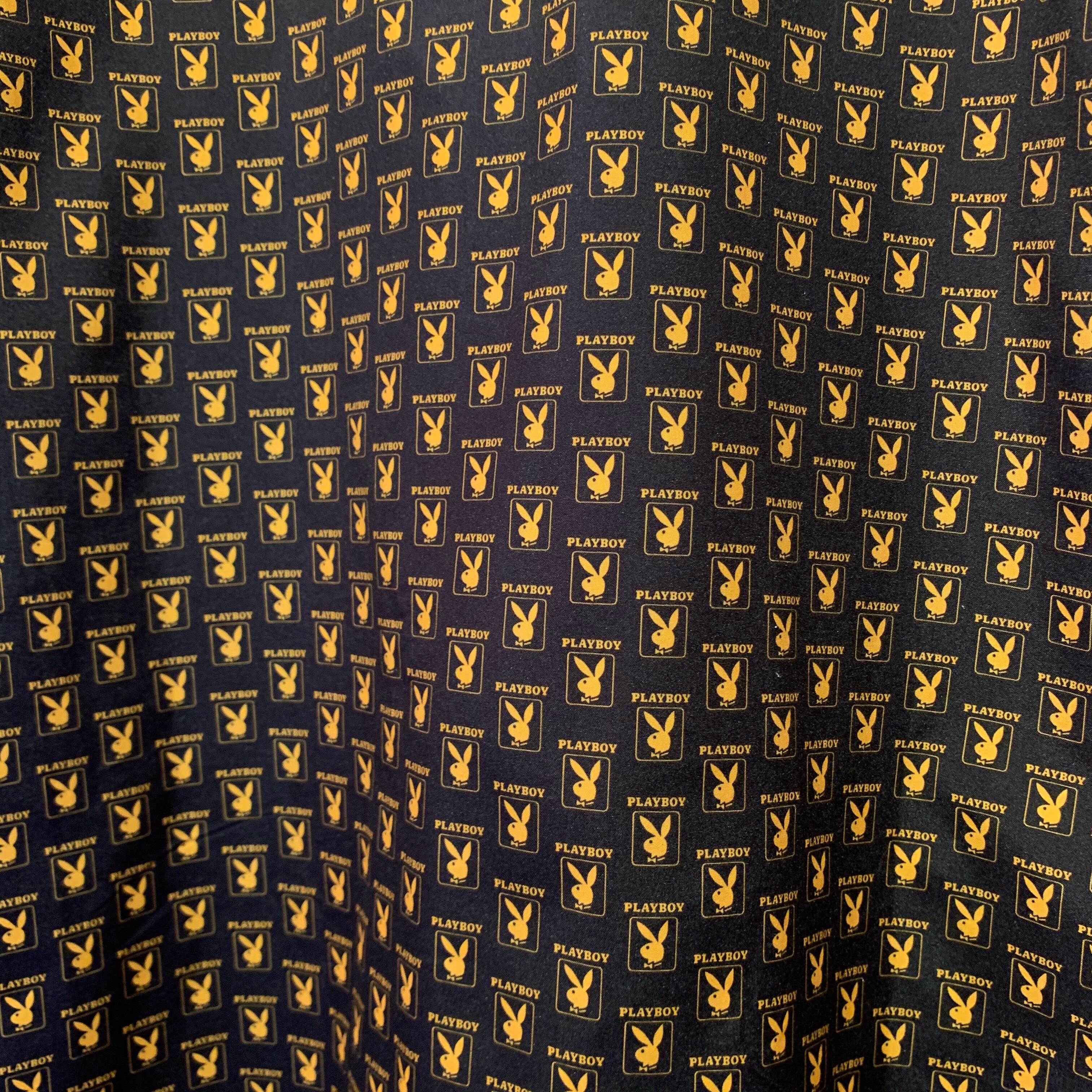 “PLAYBOY” 90’s black base logo repeating pattern S/S open-collar shirt