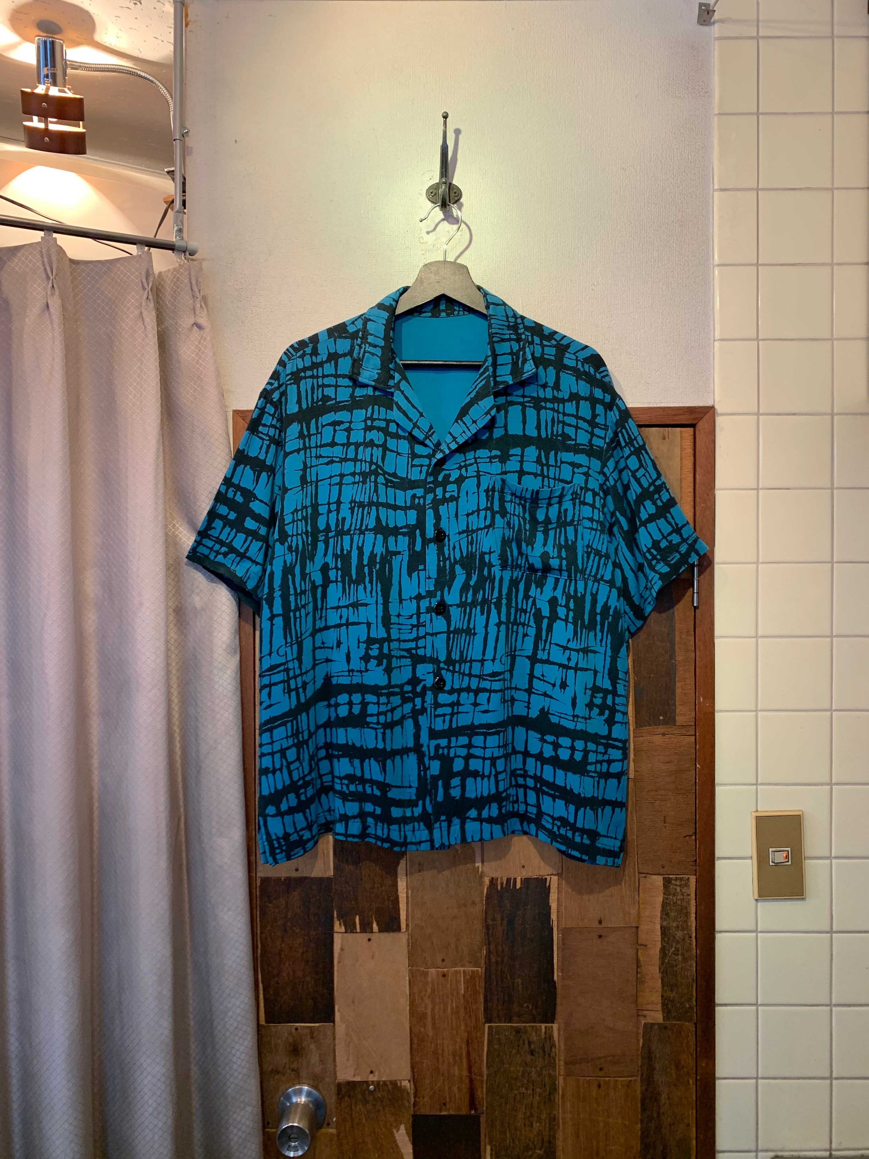 “brand unknown” blue unique pattern S/S open-collar shirt