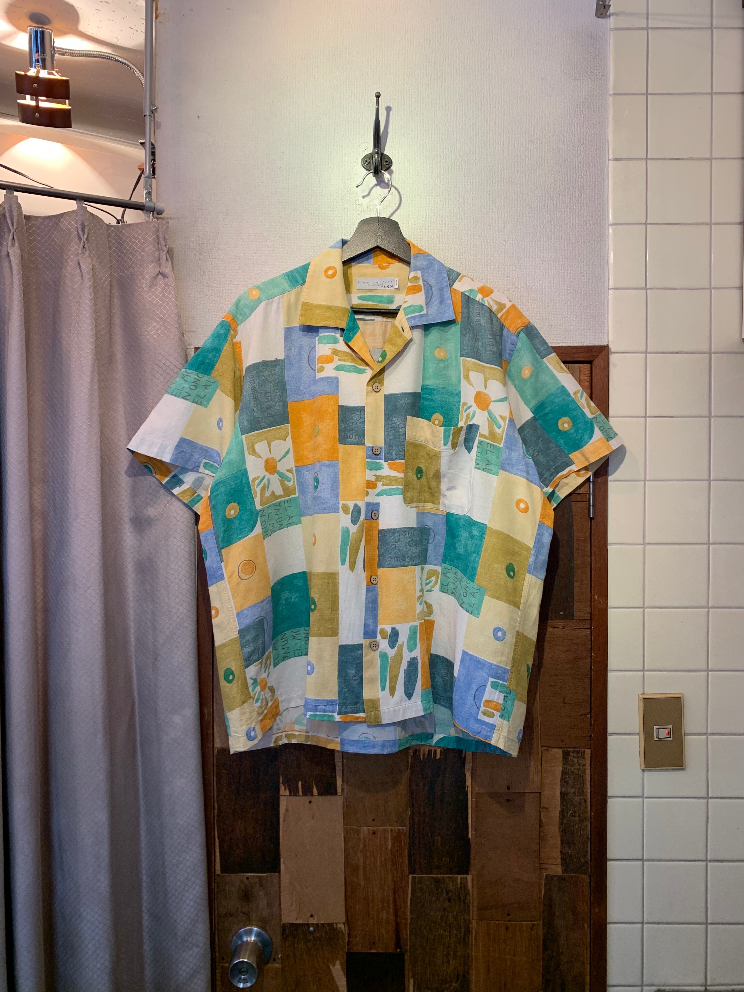 “time shifter” multi color cotton/linen unique pattern S/S shirt