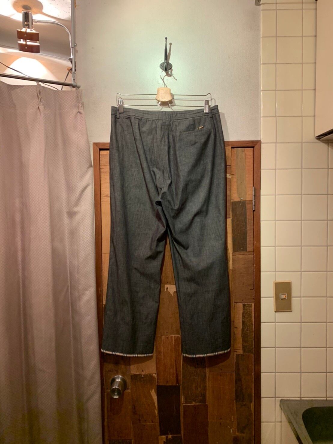 “Burberry” charcoal black cotton/poly/polyurethane switch check pattern pants