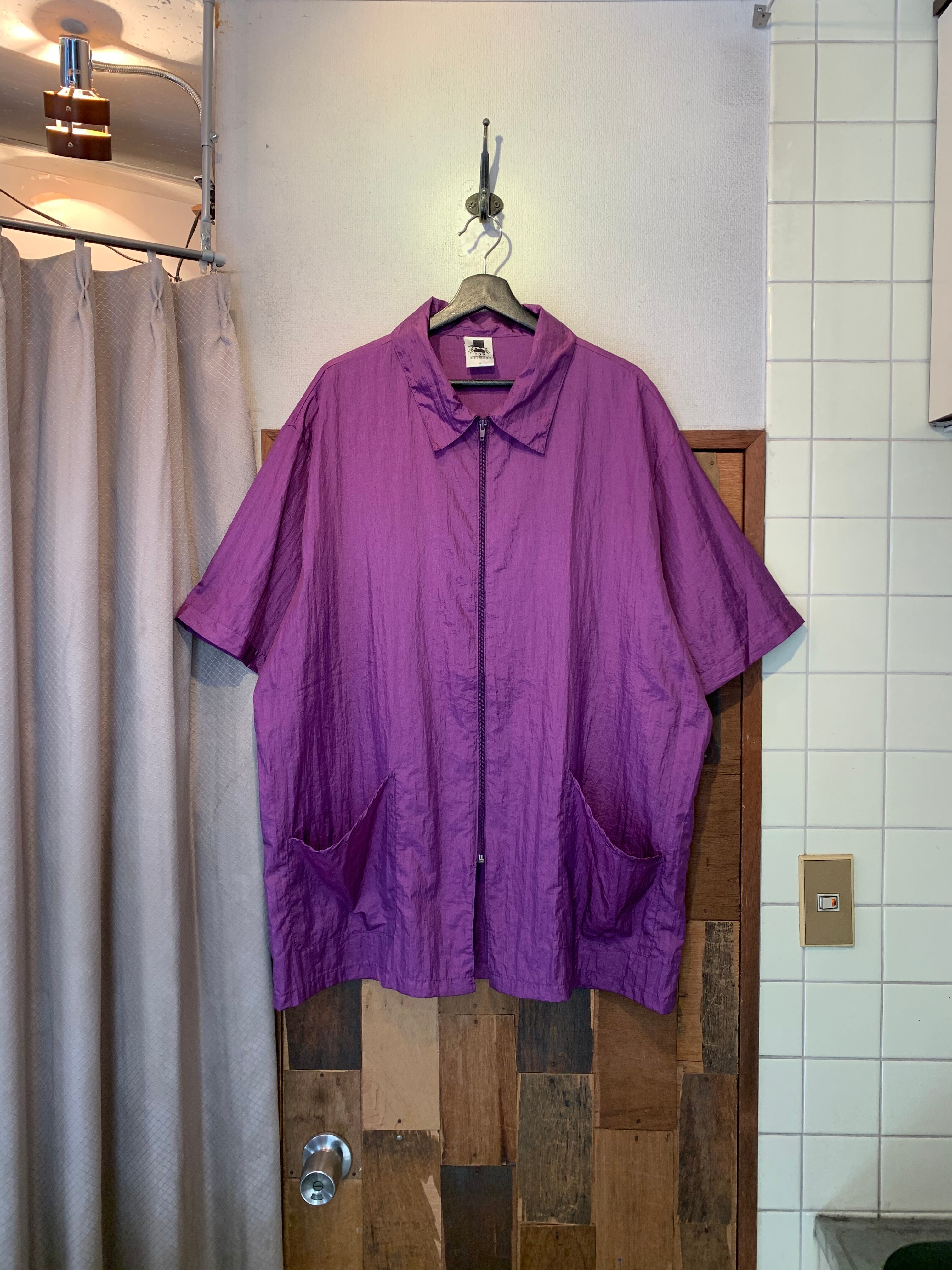“TOP PERFORMANCE” purple nylon zip-up design S/S shirt jacket