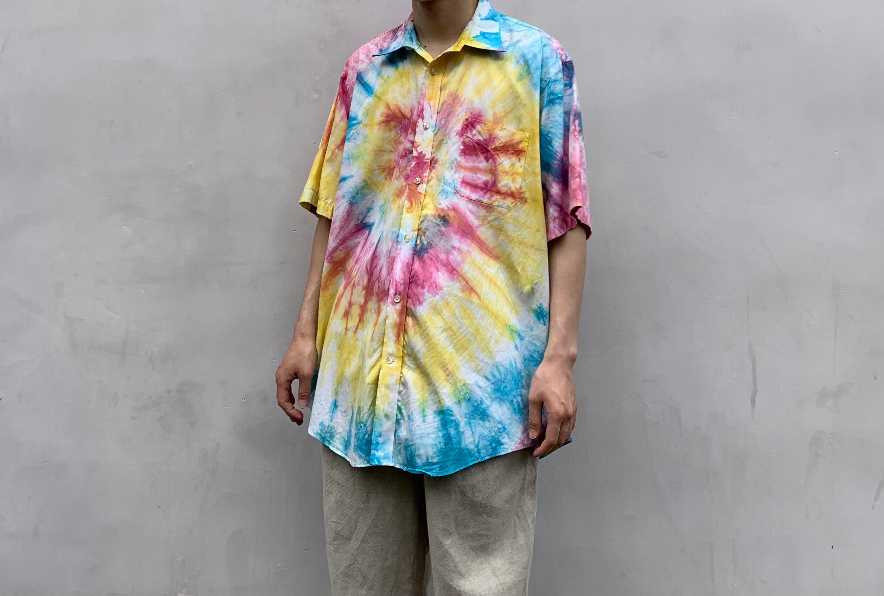 “LANDS END” multi color tie dye design S/S shirt