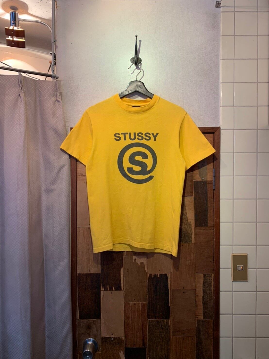 “stussy” 90's made in U.S.A yellow cotton logo printed S/S T-shirt