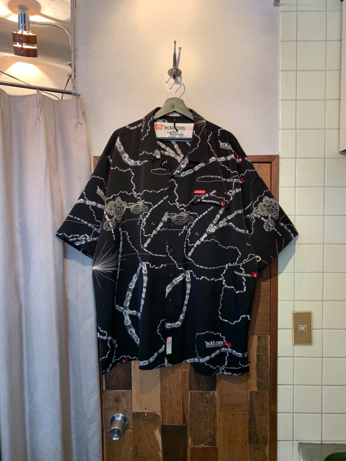 “ecko” 90's black polyester unique pattern S/S open-collar shirt