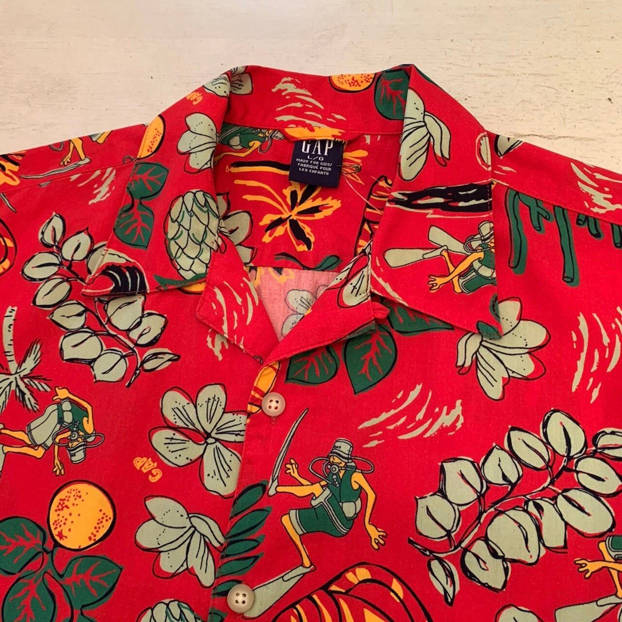 “GAP” red base cotton island printed S/S open-collar shirt