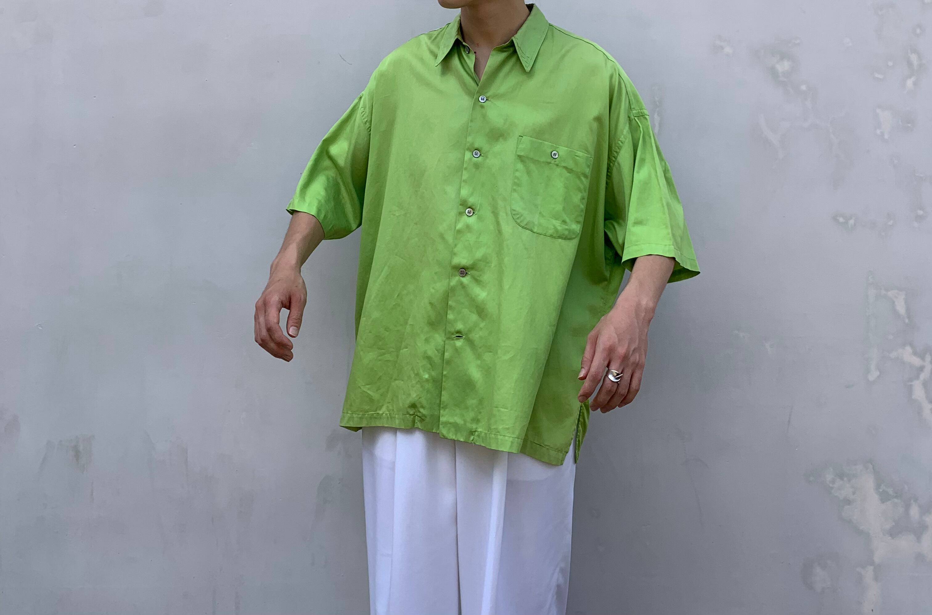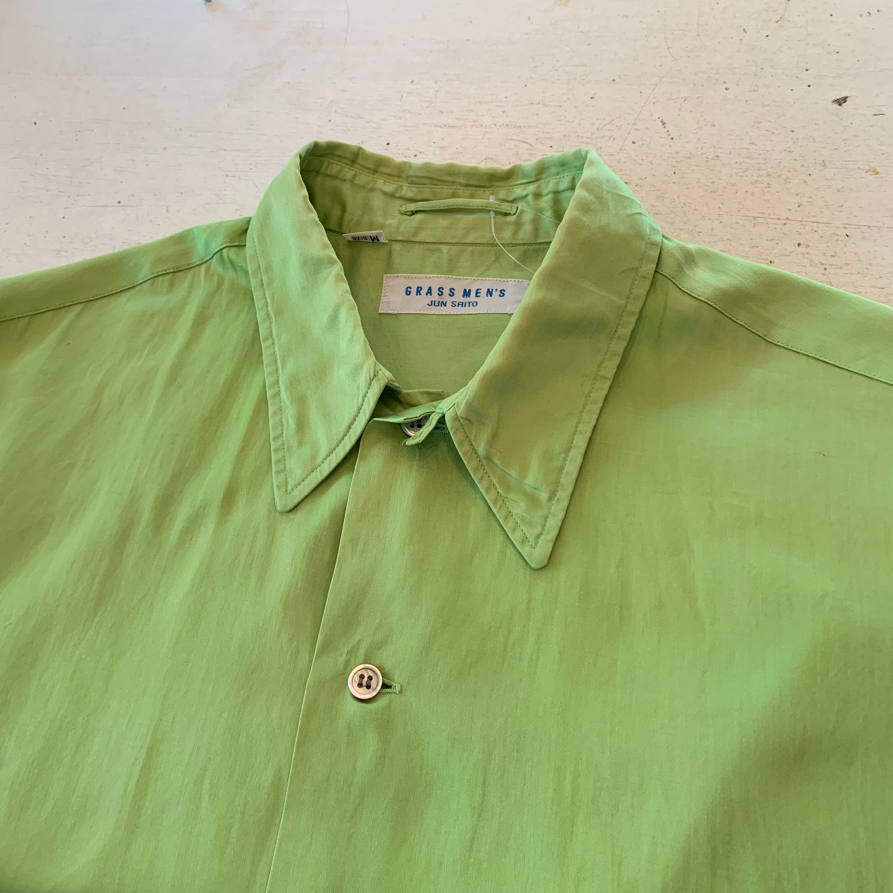 “GRASS MEN’S” 80’s light green cotton design S/S over silhouette shirt