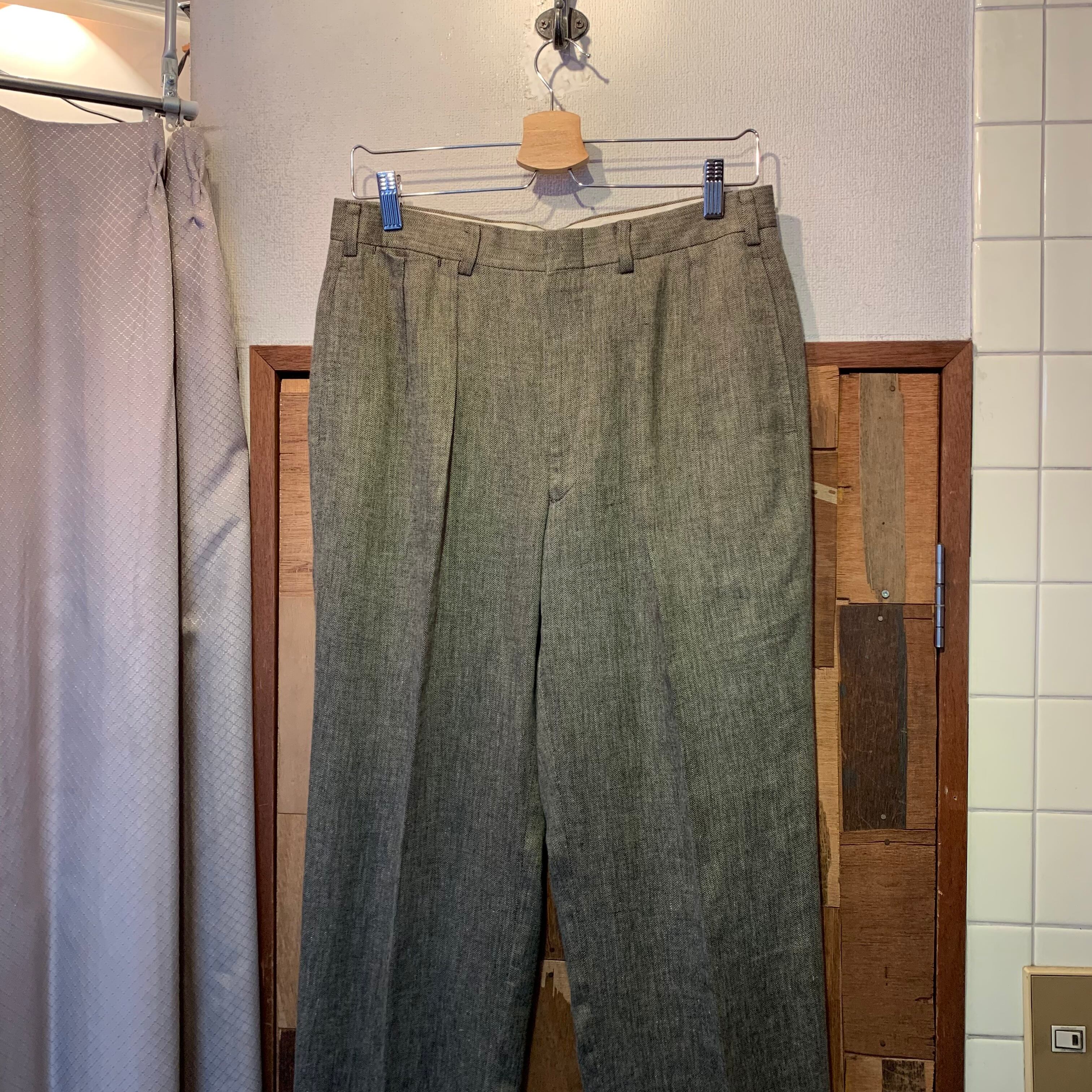 “RALPH LAUREN” khaki gray linen herringbone 2tuck slacks