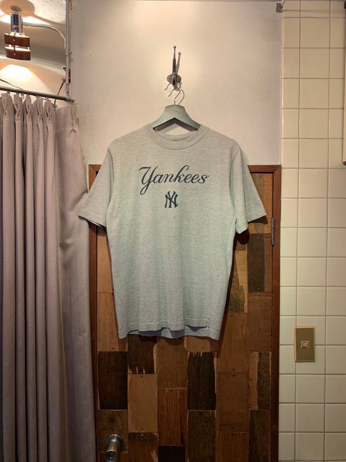 “GENUINE” 「Yankees」 gray cotton logo printed S/S T-shirt