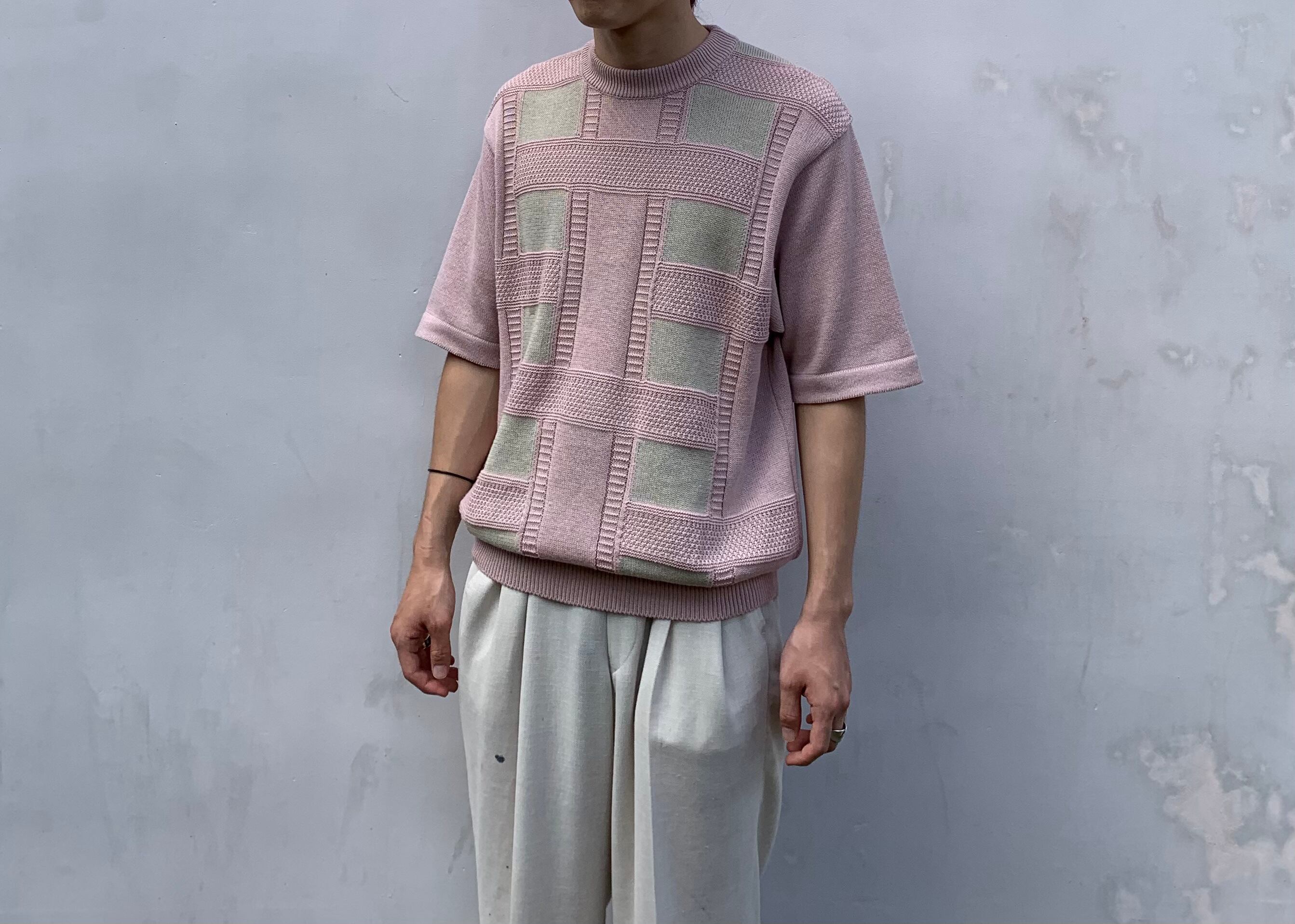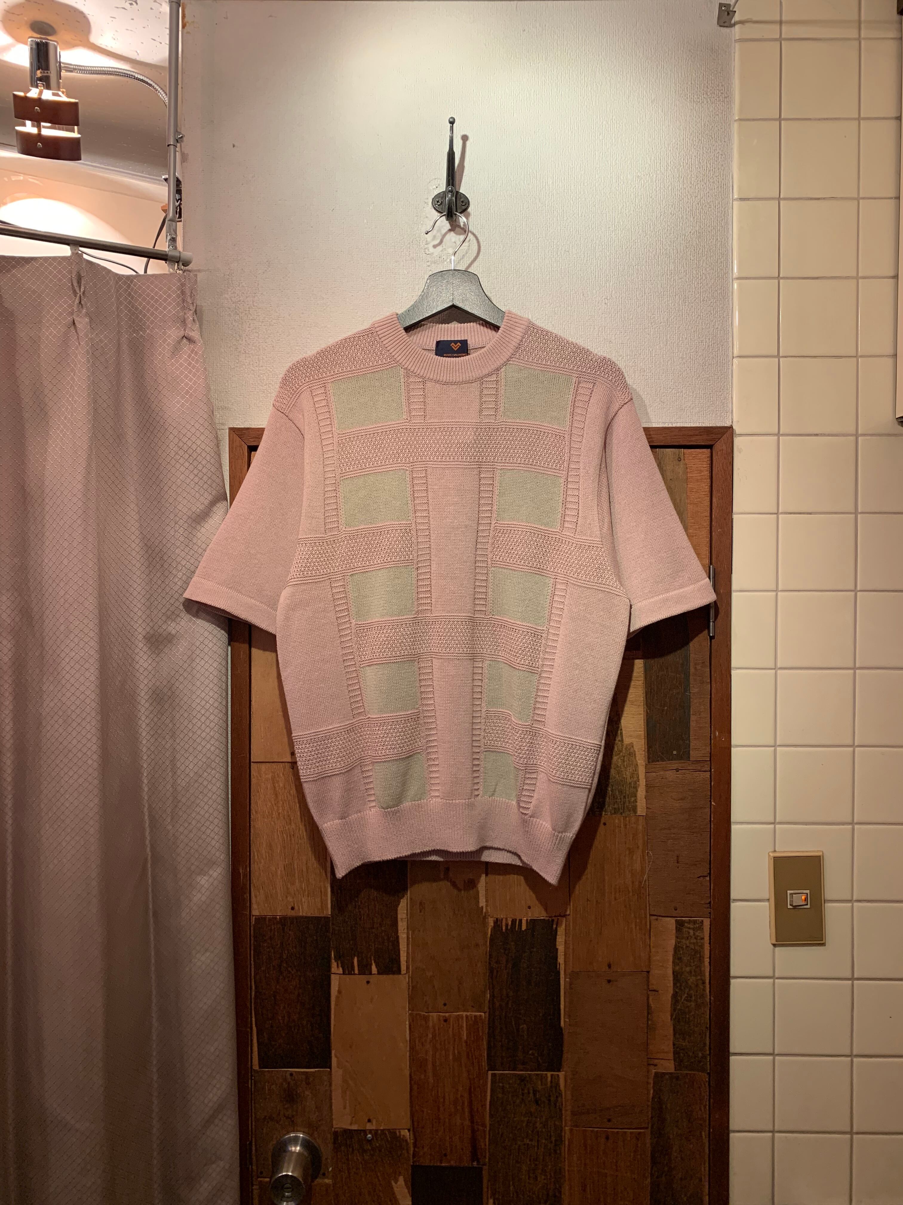 “MARIO VALENTINO” pink gray linen/cotton design S/S knit sweater