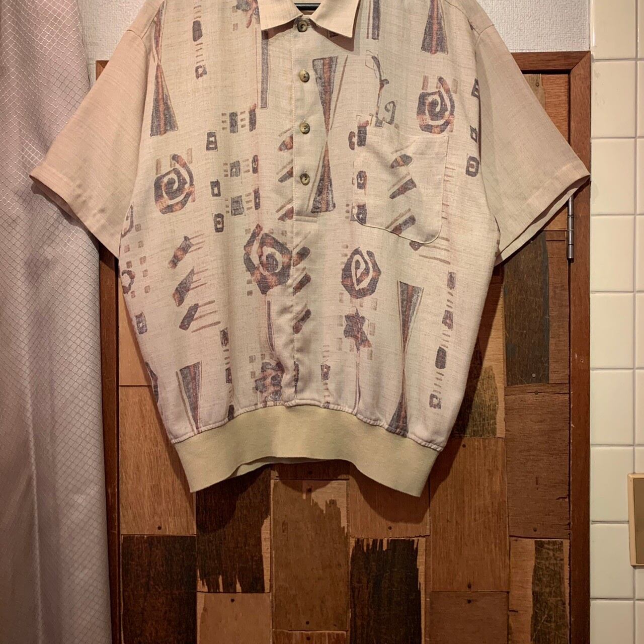 “RINALD” beige poly/rayon/linen design S/S pullover shirt