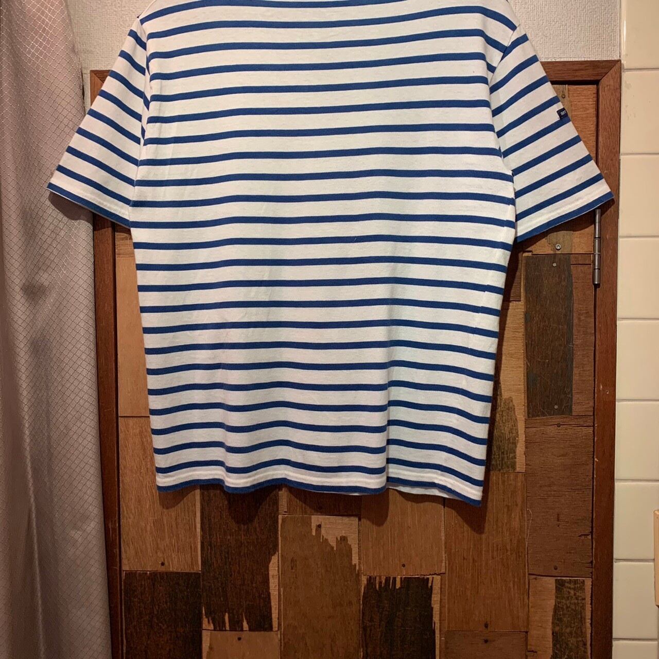 “SAINT JAMES” made in FRANCE white×blue cotton border pattern S/S T-shirt
