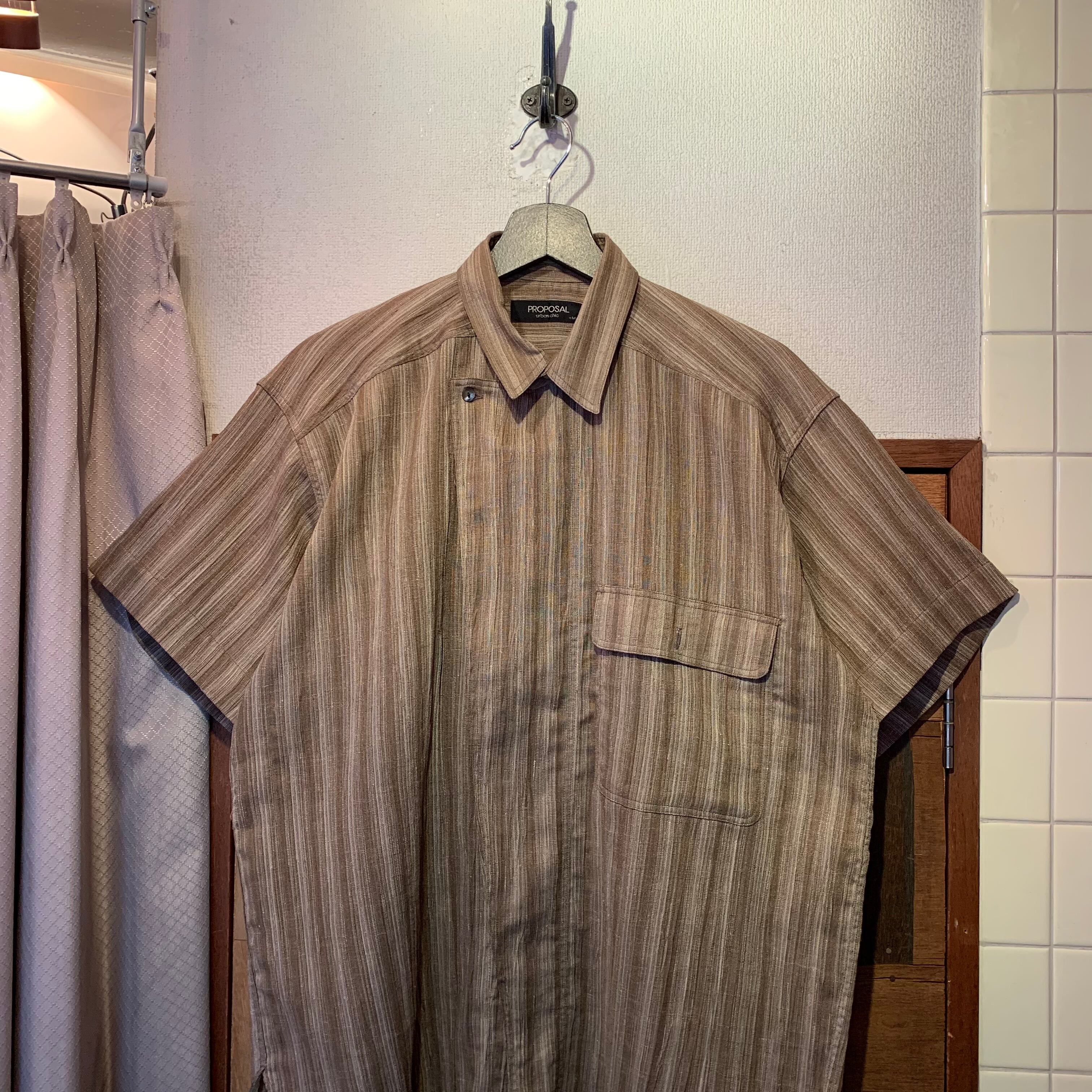 “PROPOSAL” light brown stripe pattern unique design S/S shirt