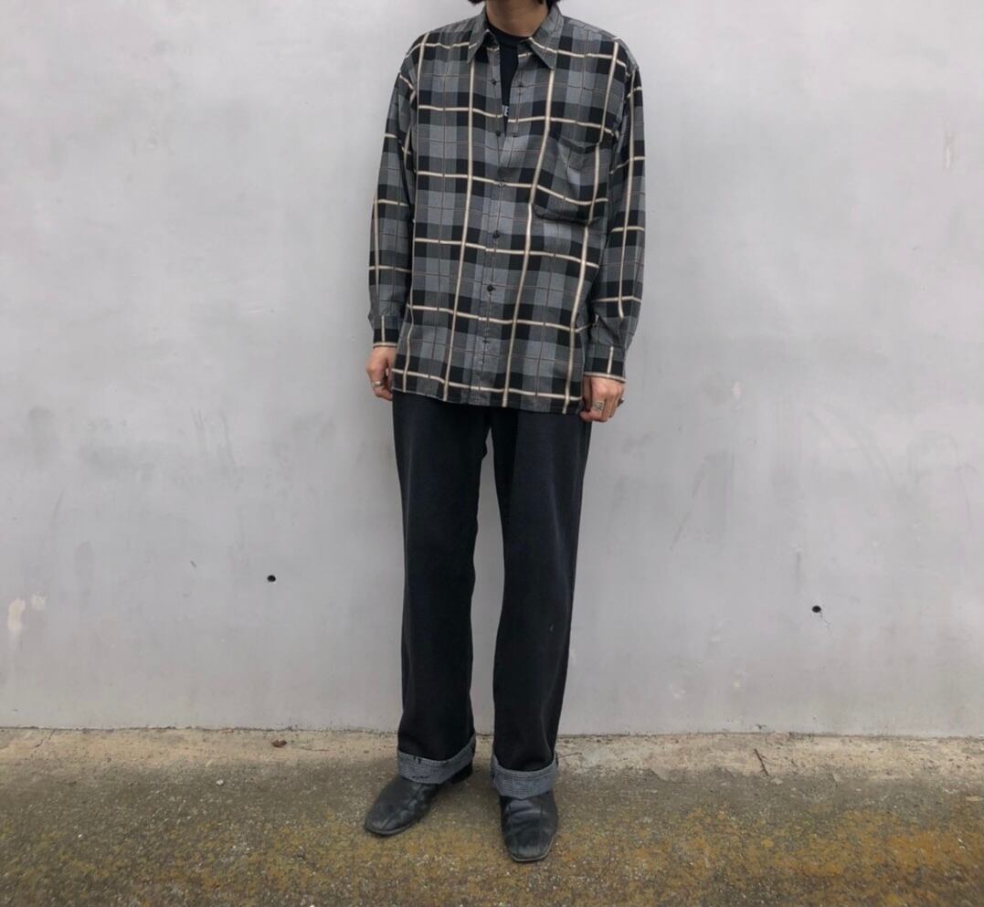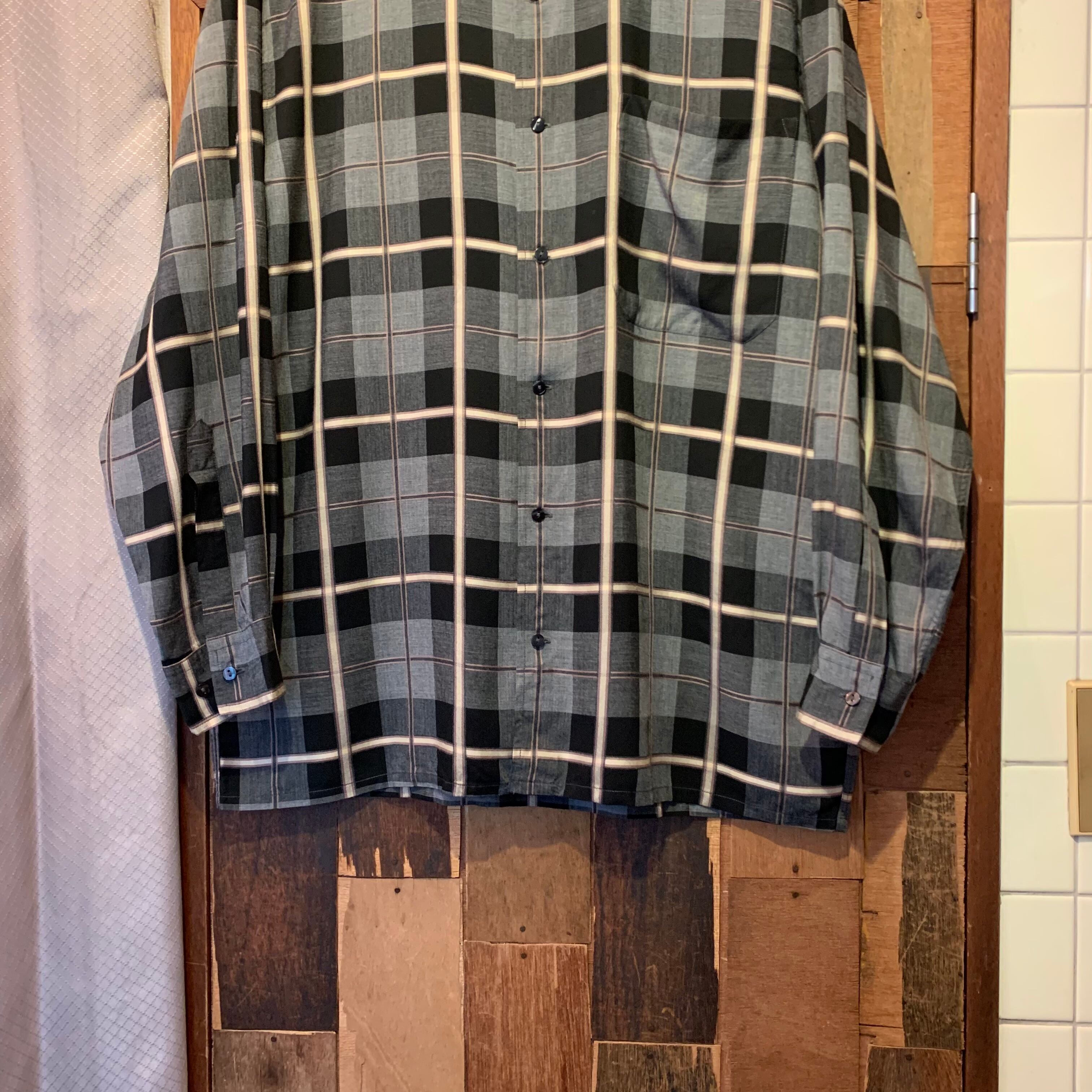 “Calvin Klein” black×charcoal gray rayon/poly check pattern L/S shirt