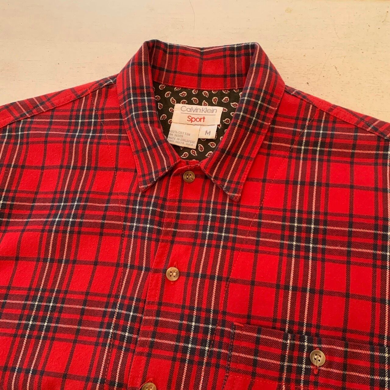 “Calvin Klein” red base cotton check pattern L/S shirt