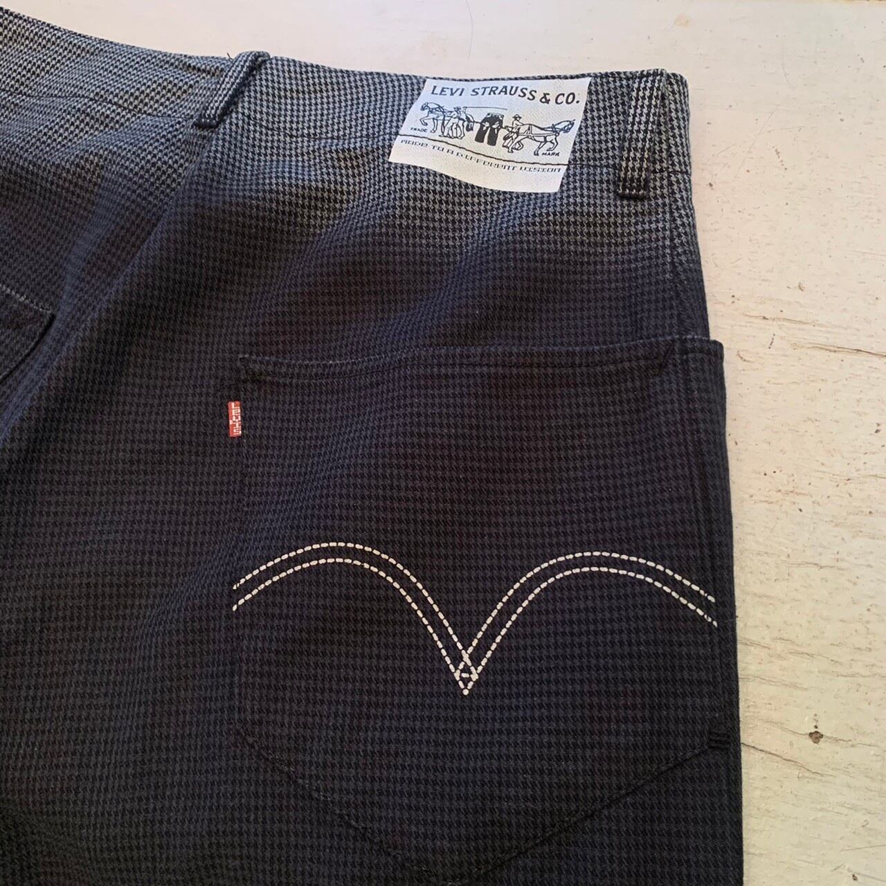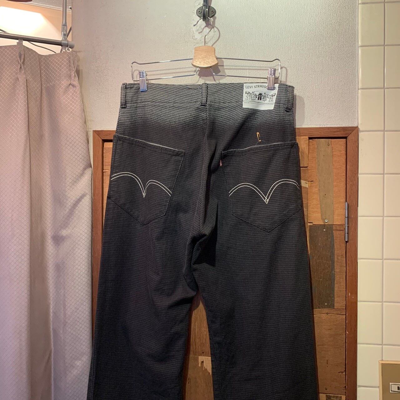 “Levi's” black base cotton gradation&repeating pattern slacks