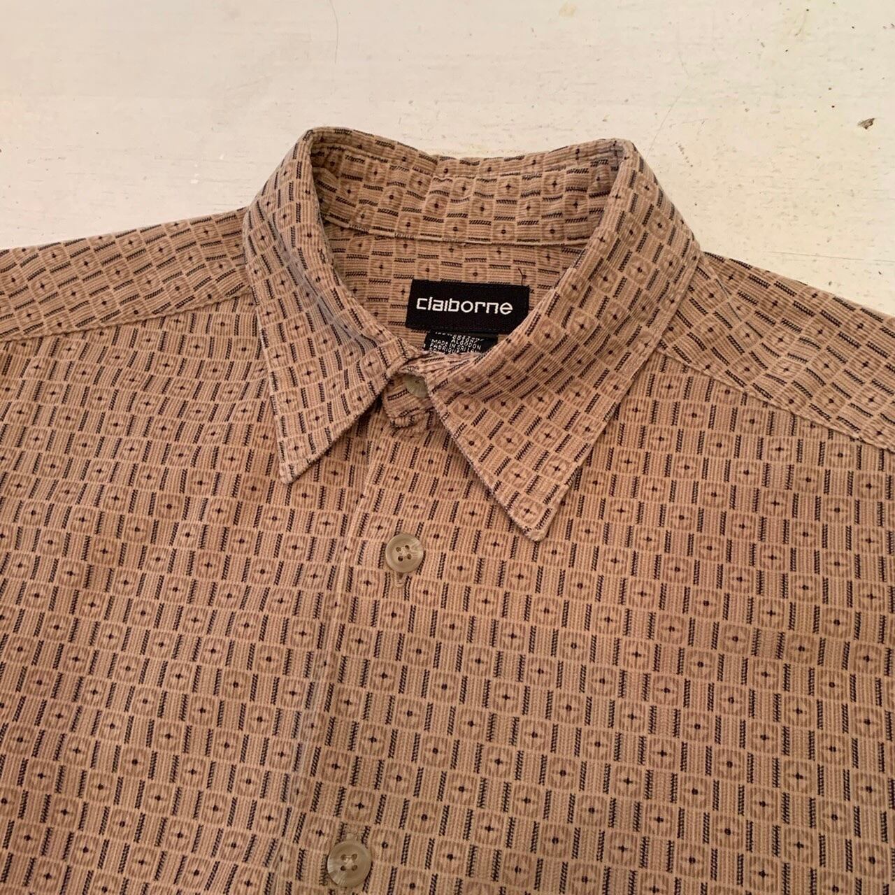 “claiborne” beige base cotton repeating pattern L/S shirt