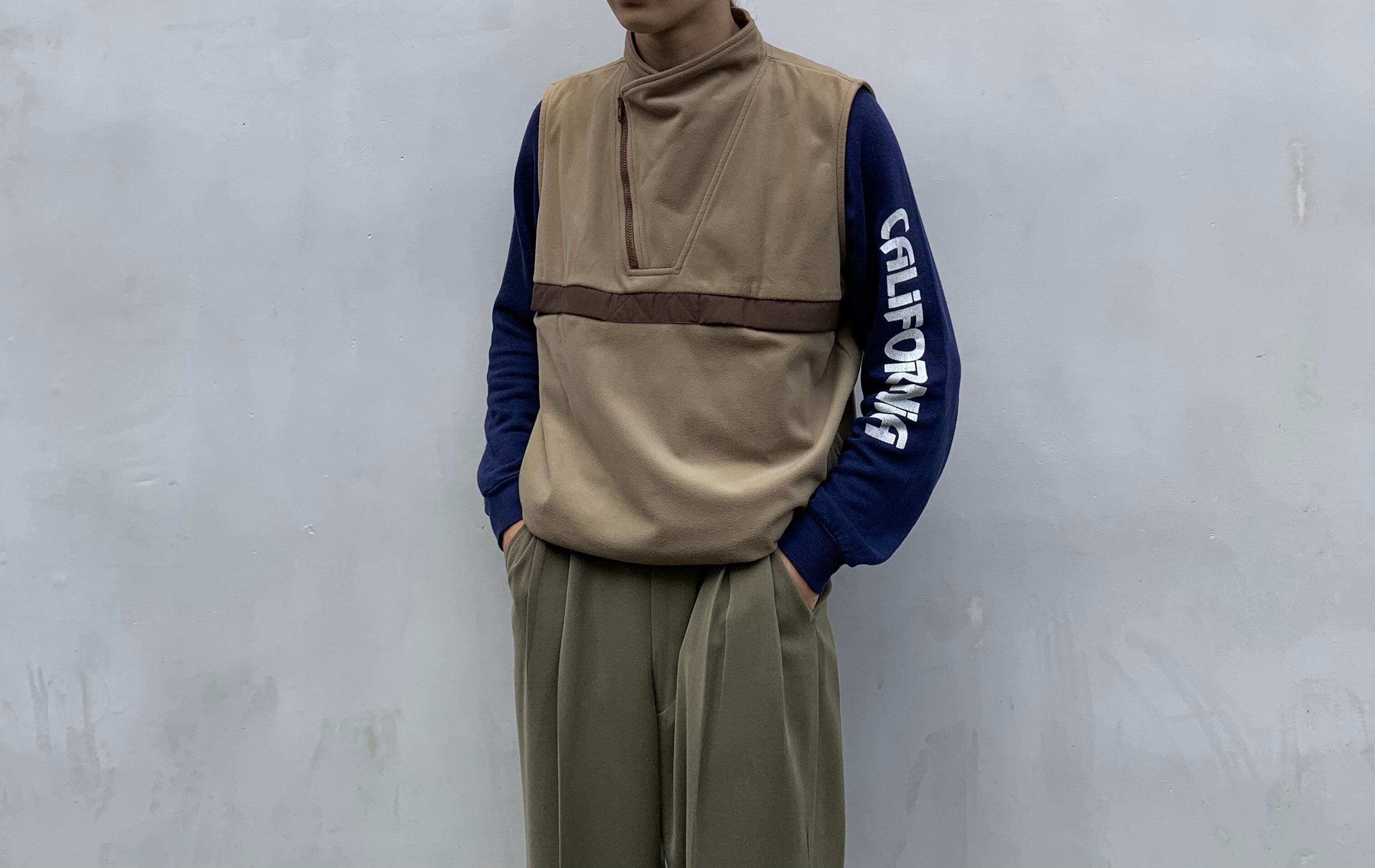 “Raw-Tex” light brown unique design half-zip vest